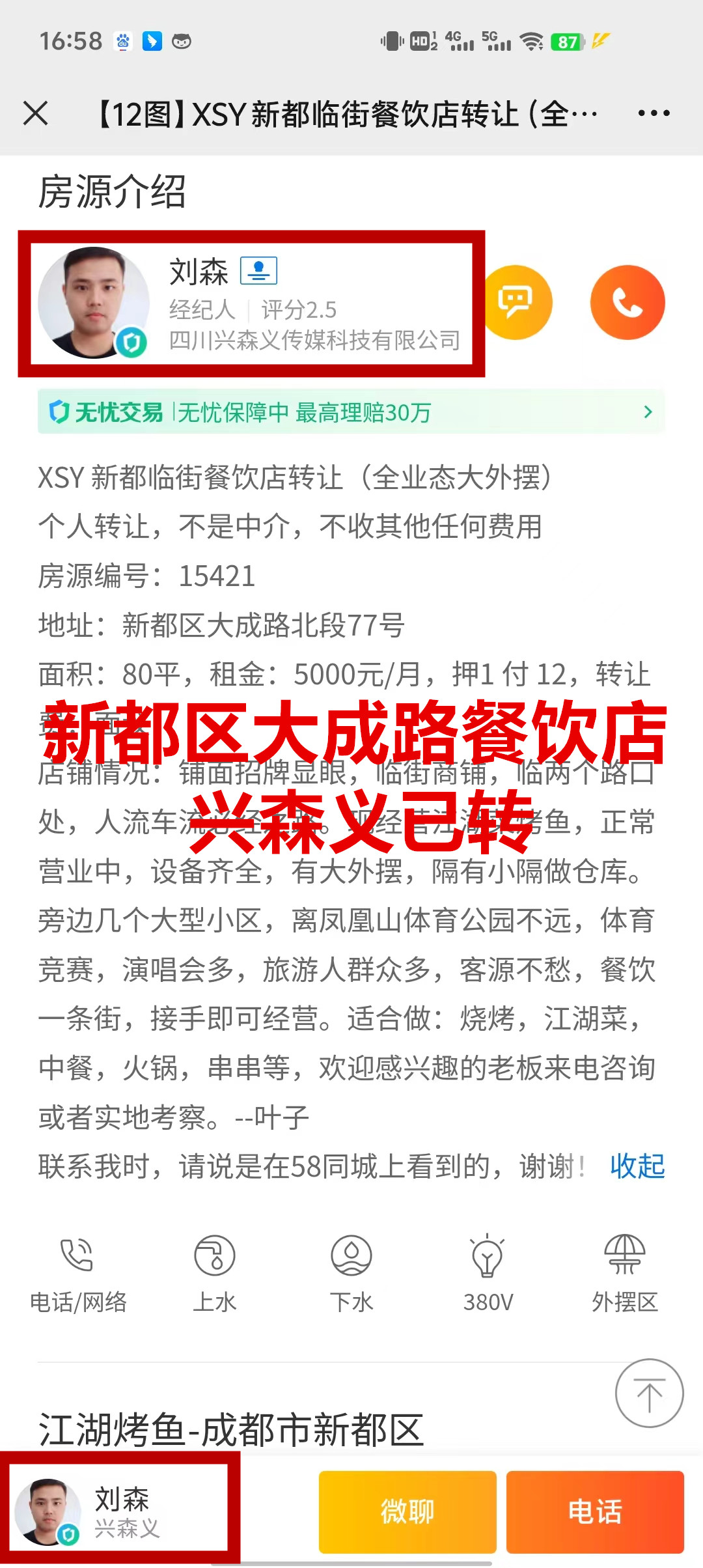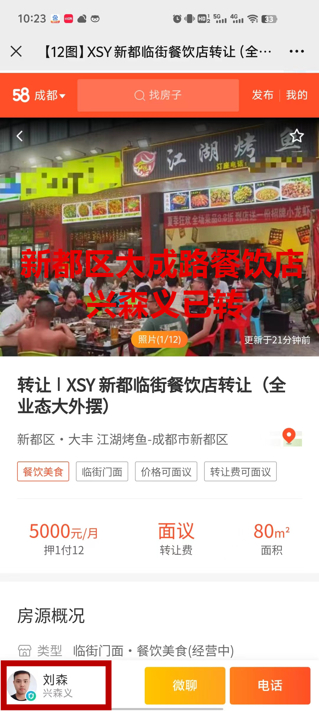 新都区大成路北段烤鱼店已转