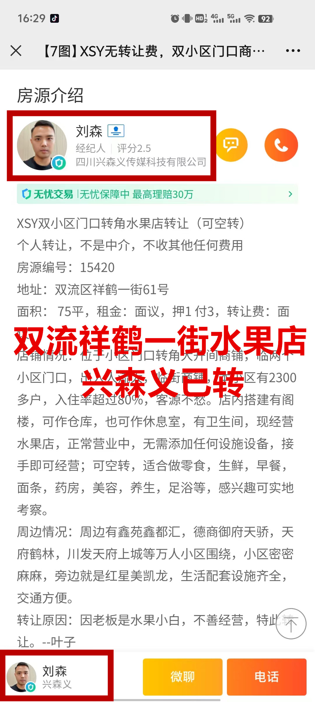 双流区祥鹤一街水果店已转让