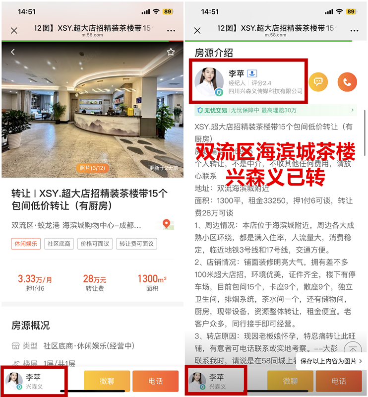 双流海滨城附近茶楼已转让