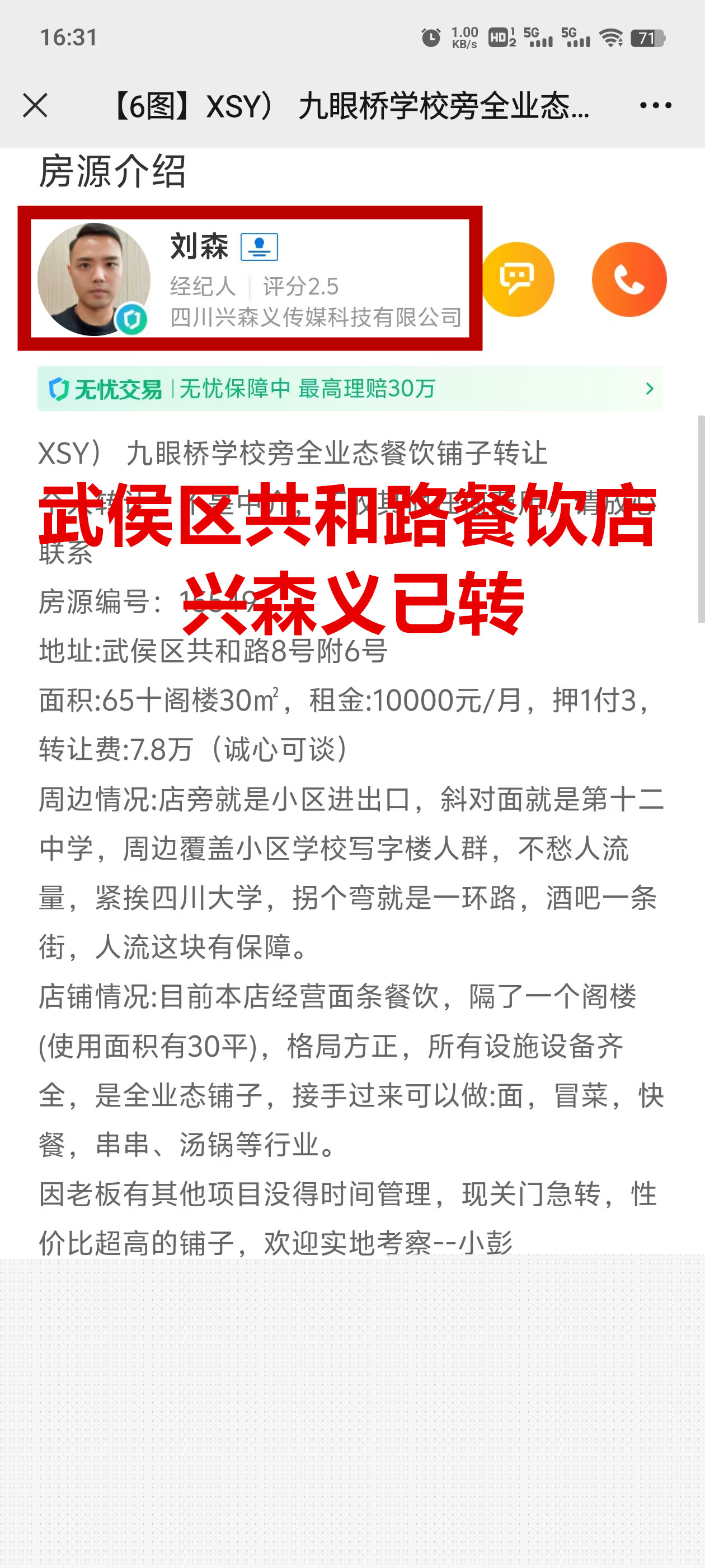 武侯区共和路餐饮店已转让