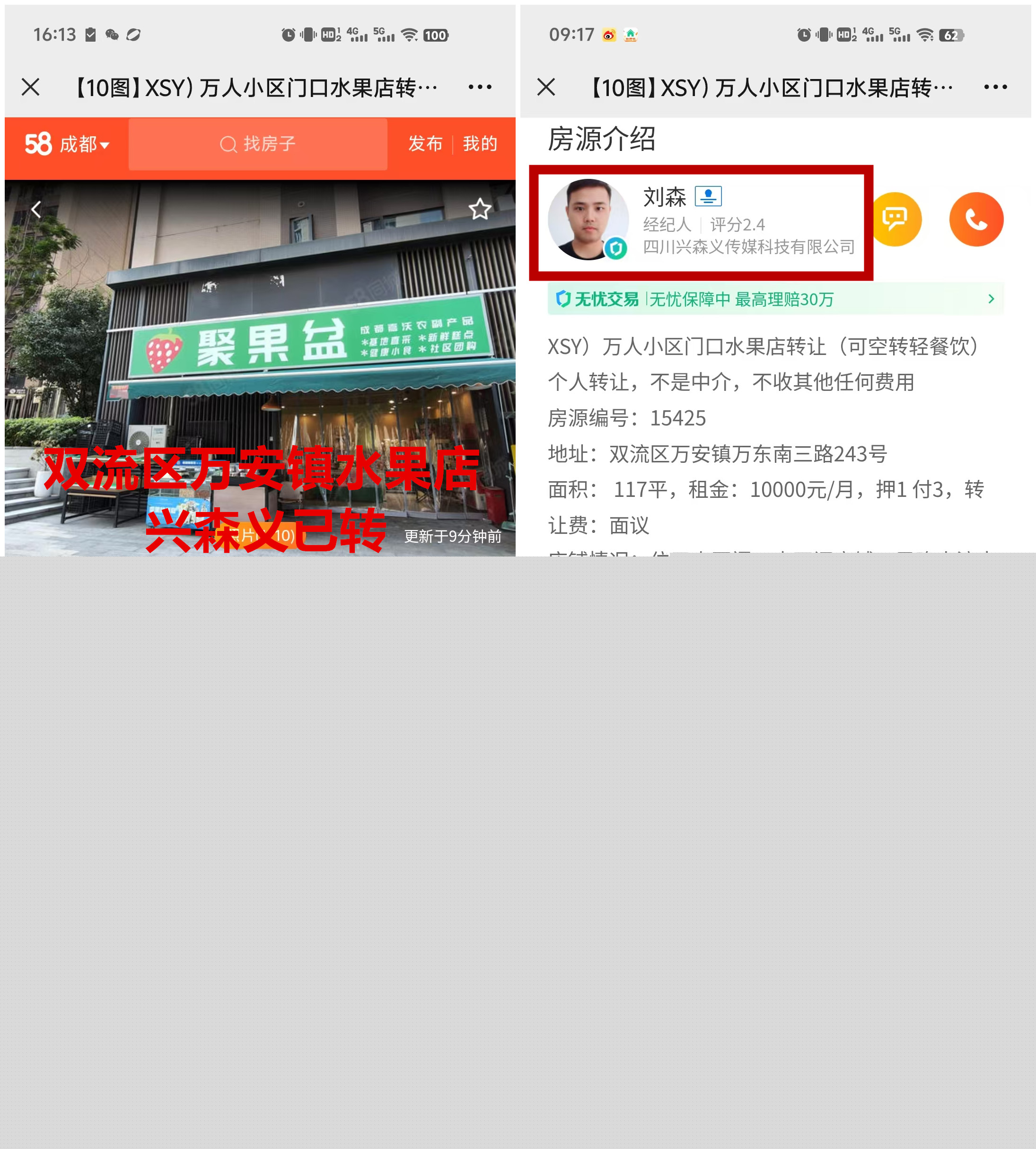双流区万安镇万东南三路水果店已转让