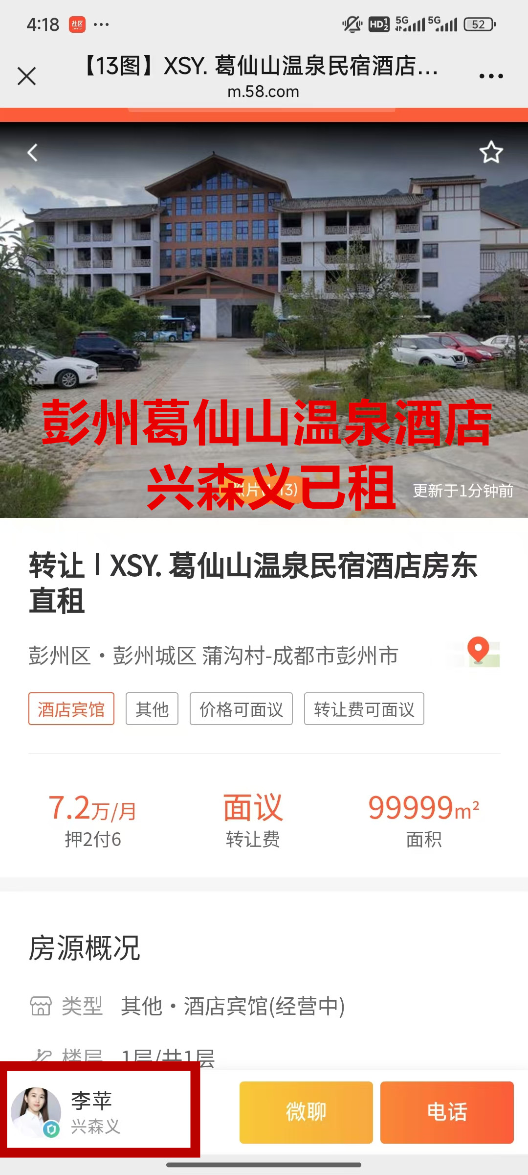 彭州葛仙山镇蒲沟路温泉民宿酒店已出租