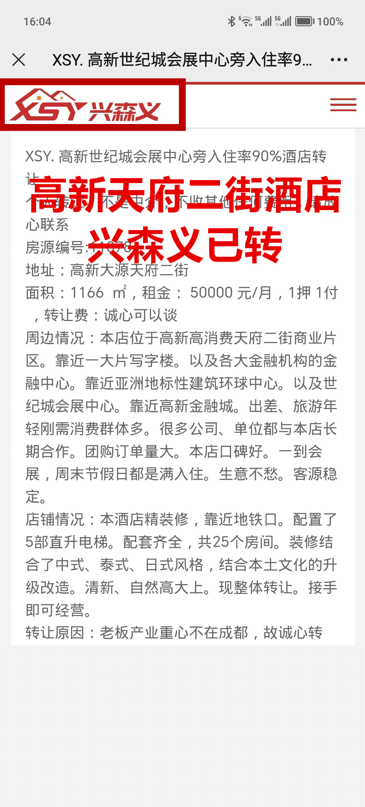 高新区大源天府二街酒店已转让