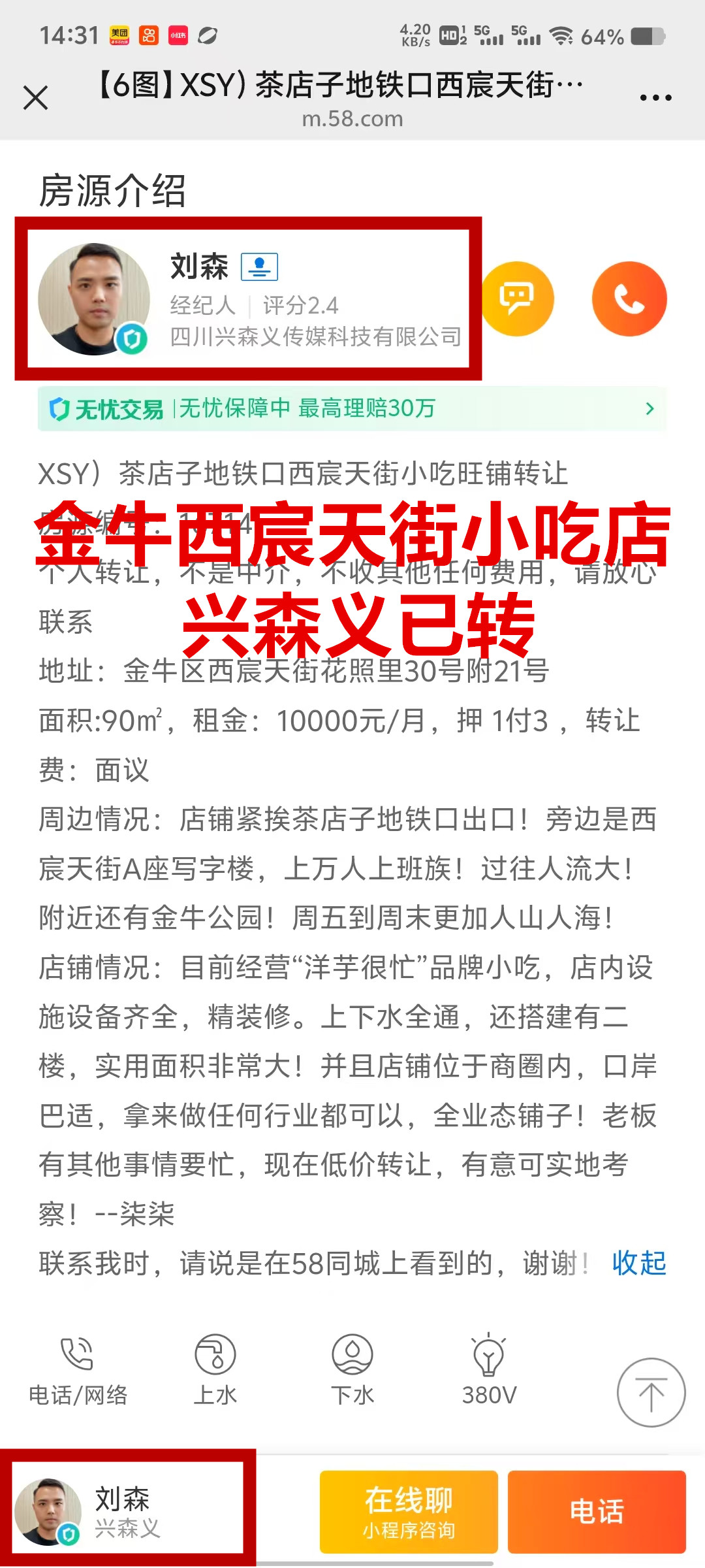 金牛区西宸天街花照里小吃店已转让