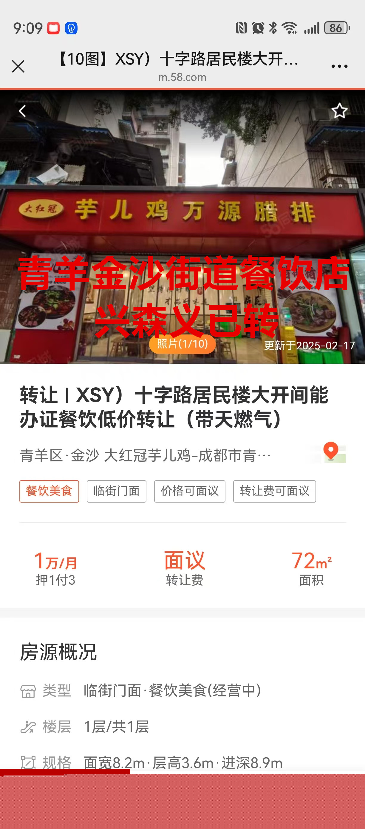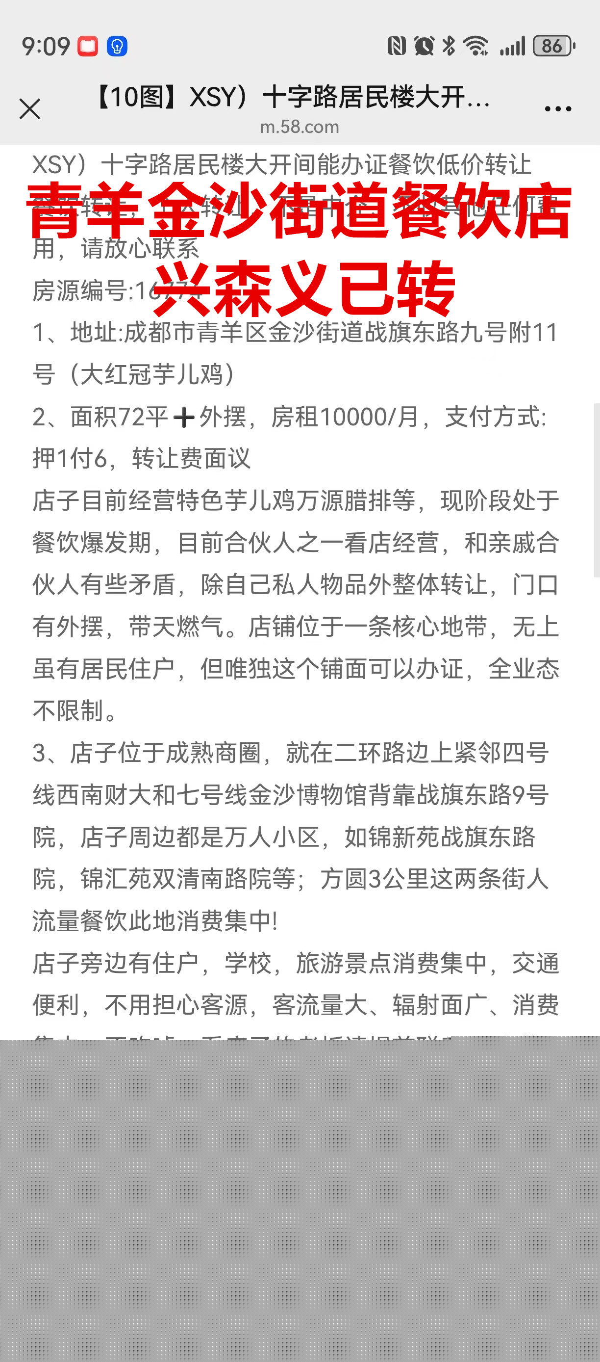 青羊区金沙街道战旗东路餐饮店已转让