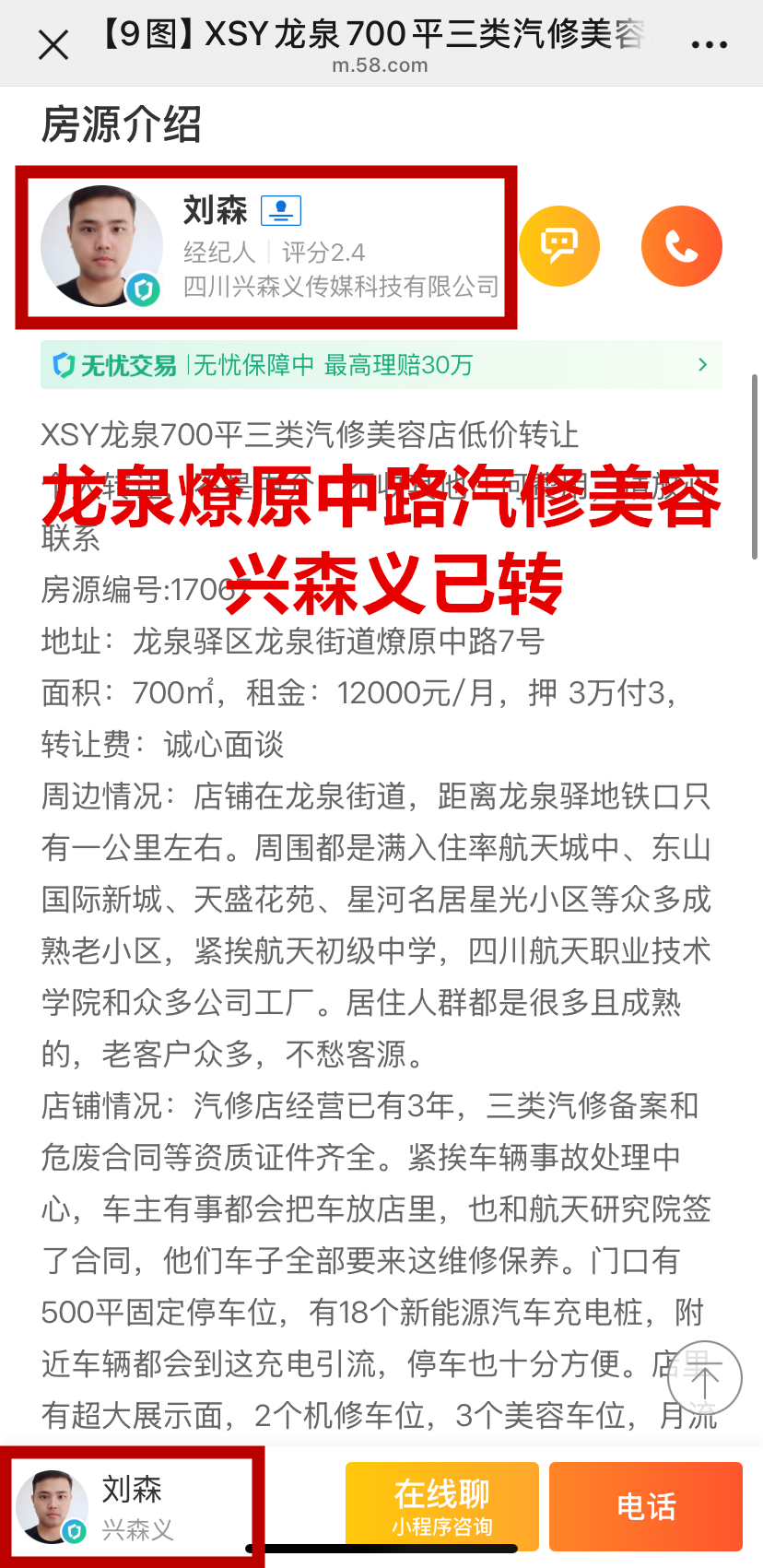 龙泉驿区龙泉街道燎原中路汽修美容店已转让