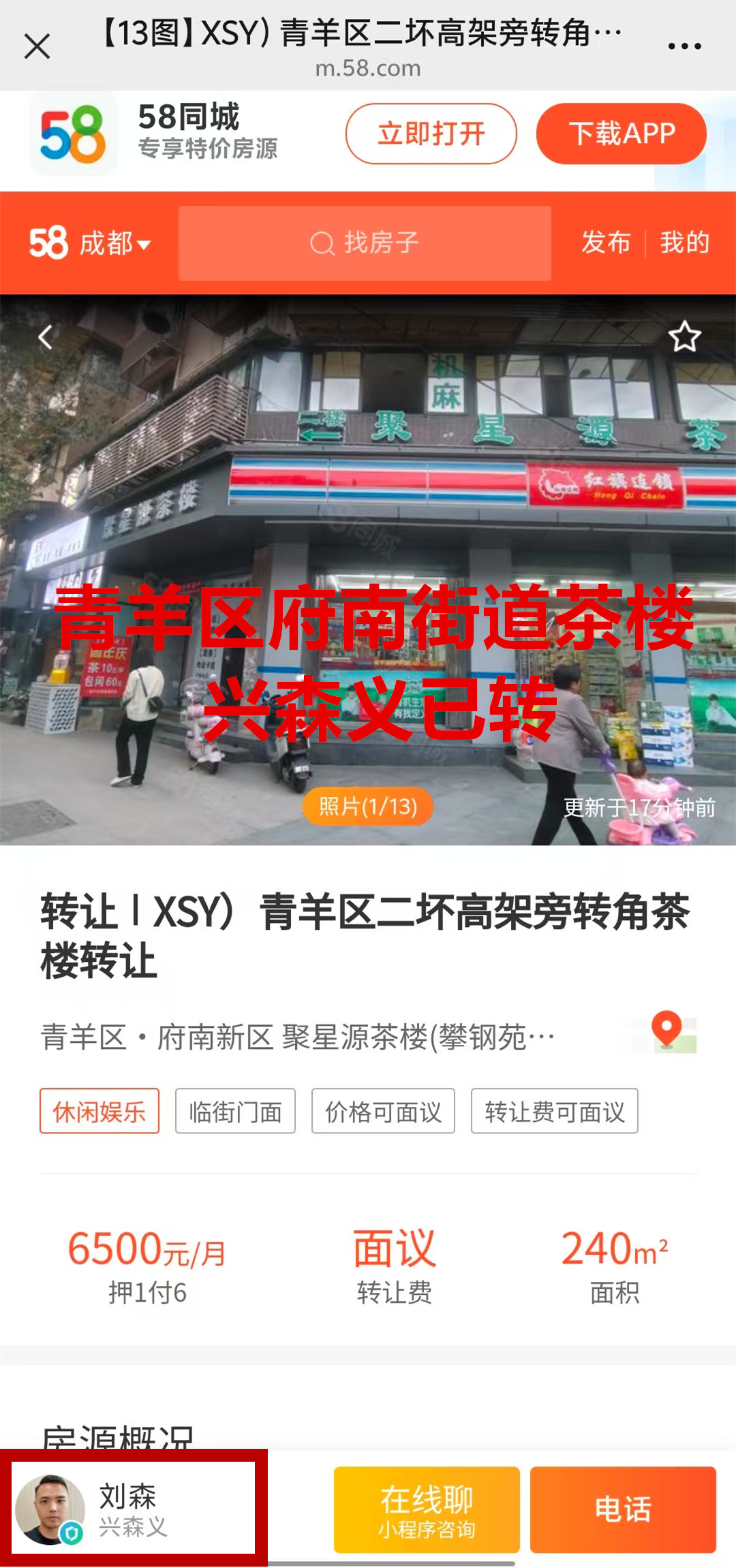 青羊区府南街道二环路西二段茶楼已转让