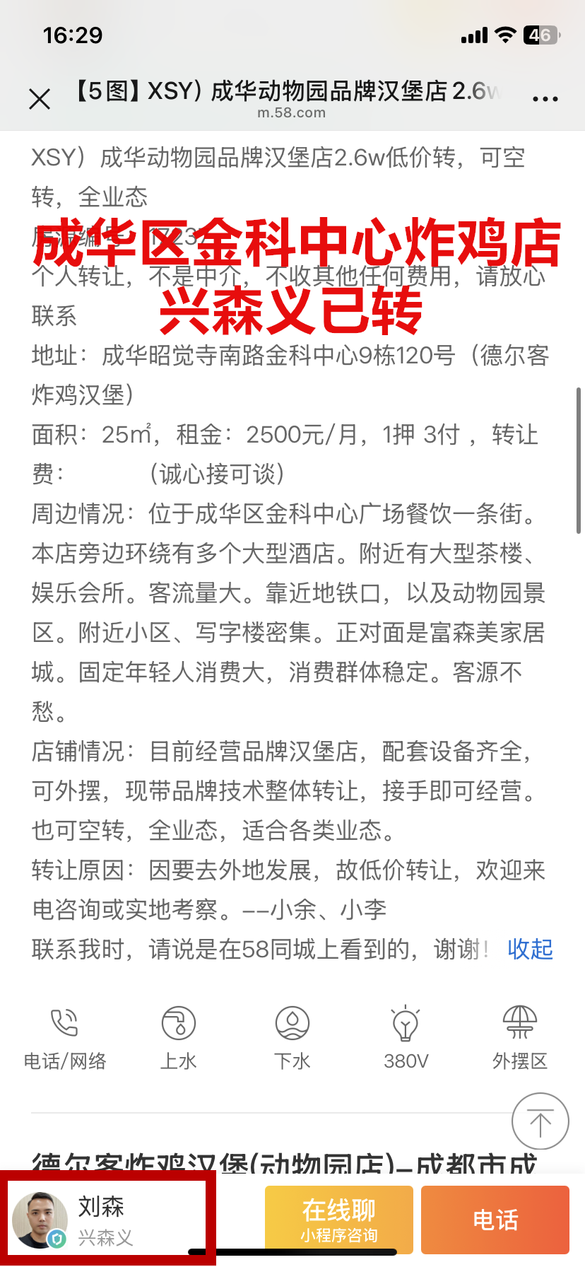 成华昭觉寺南路金科中心炸鸡店已转让