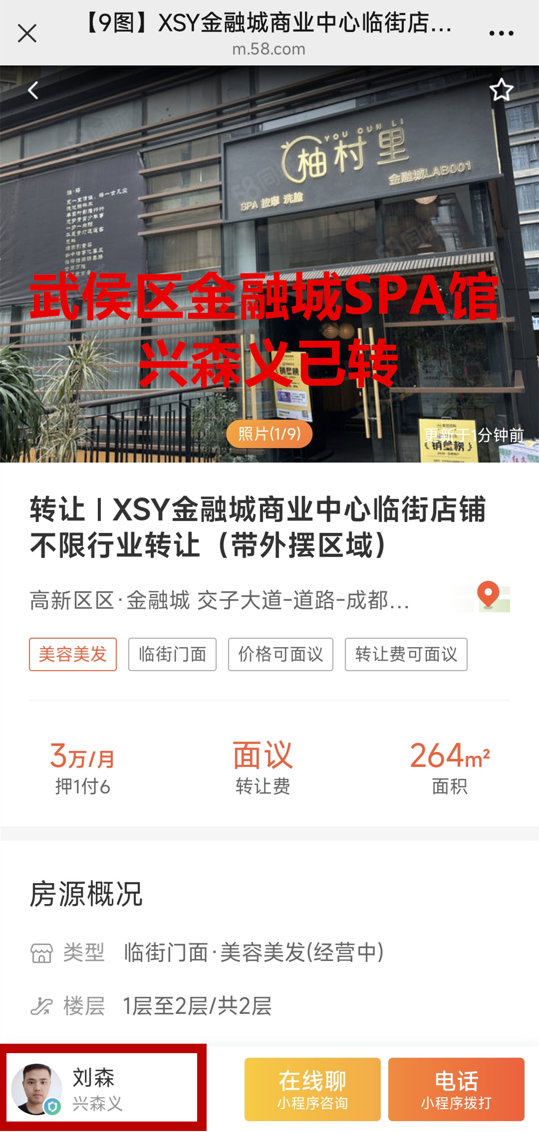 武侯区交子大道SPA馆已转让