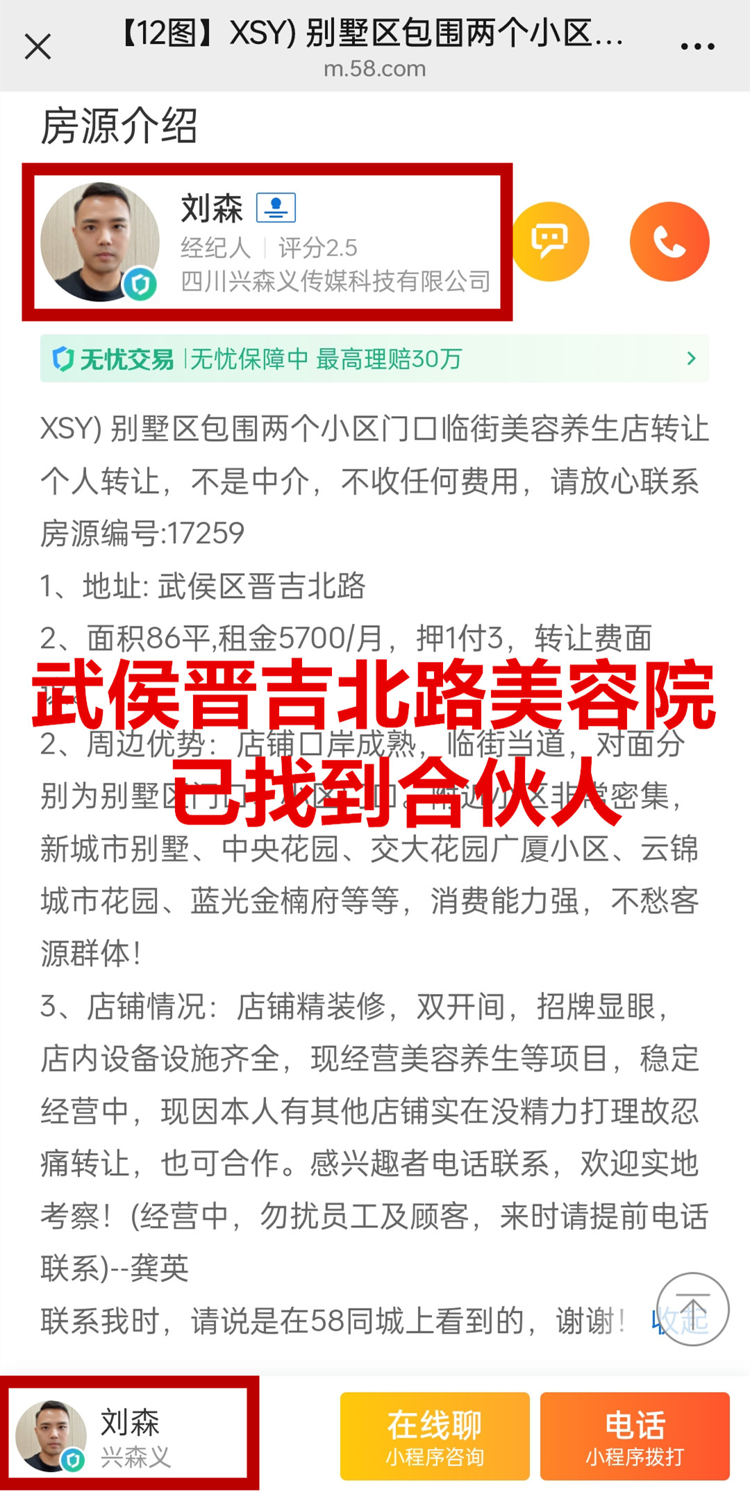 武侯区晋吉北路美容院已找到合伙人