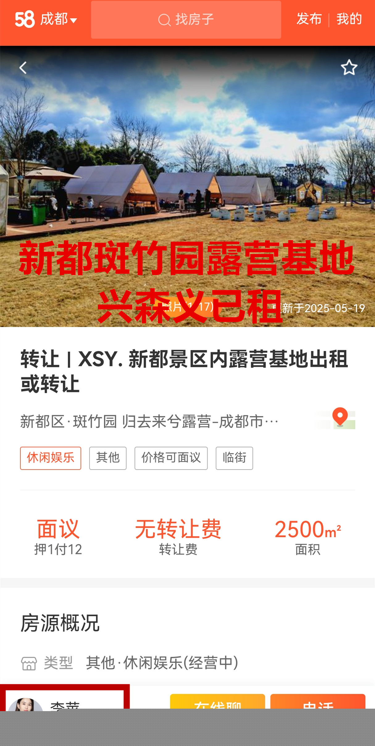 新都区斑竹园街道双龙田园回龙湖畔露营基地已出租