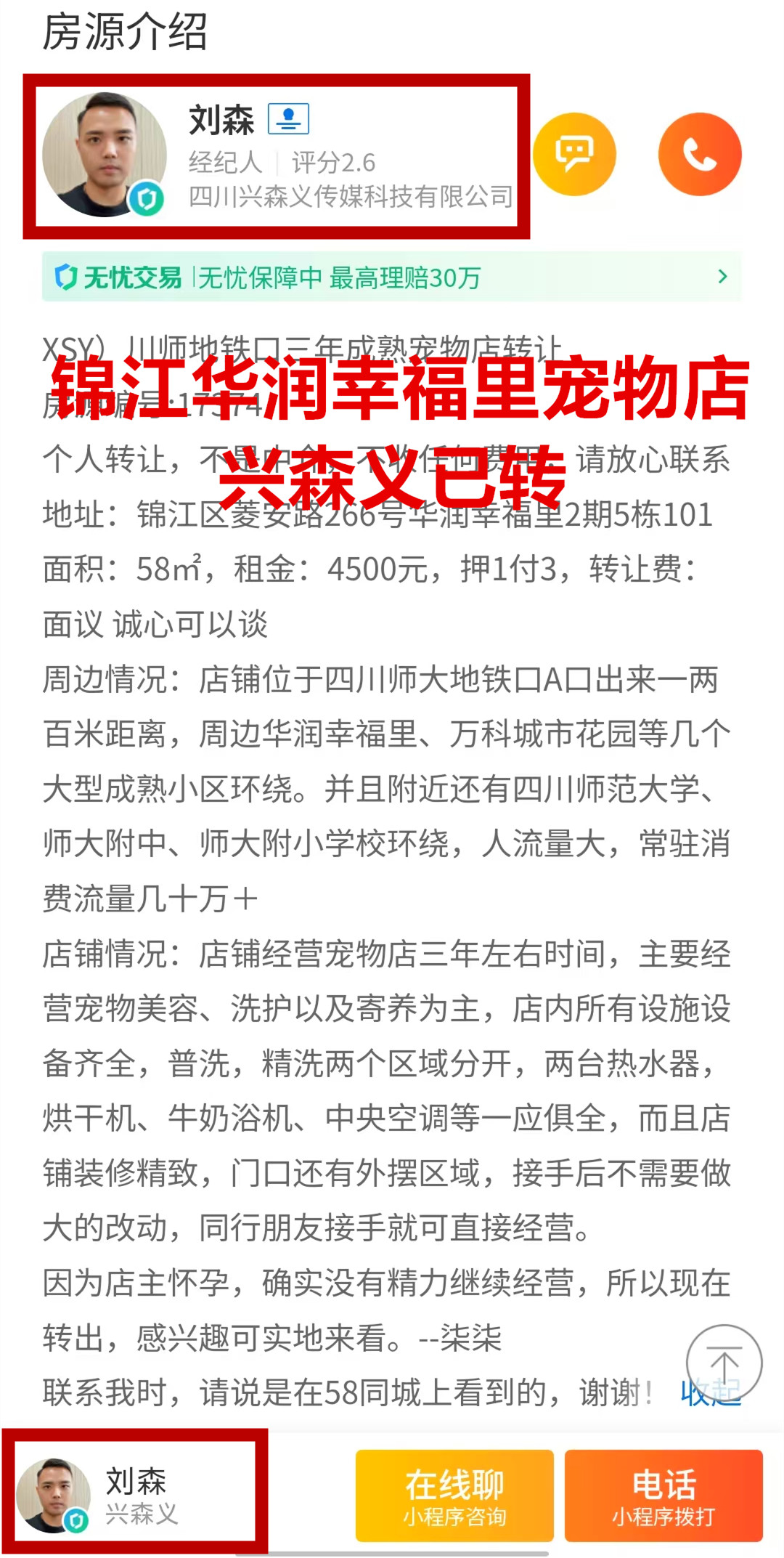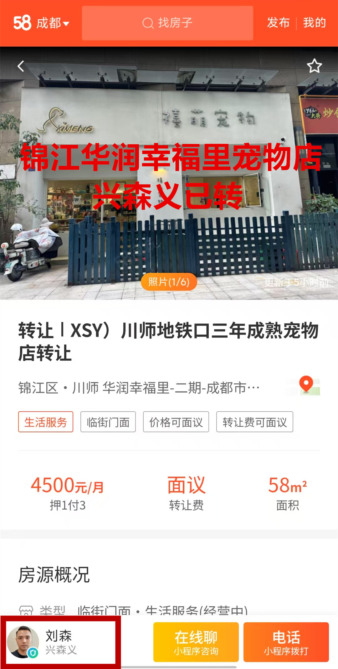 锦江区菱安路华润幸福里宠物店已转让