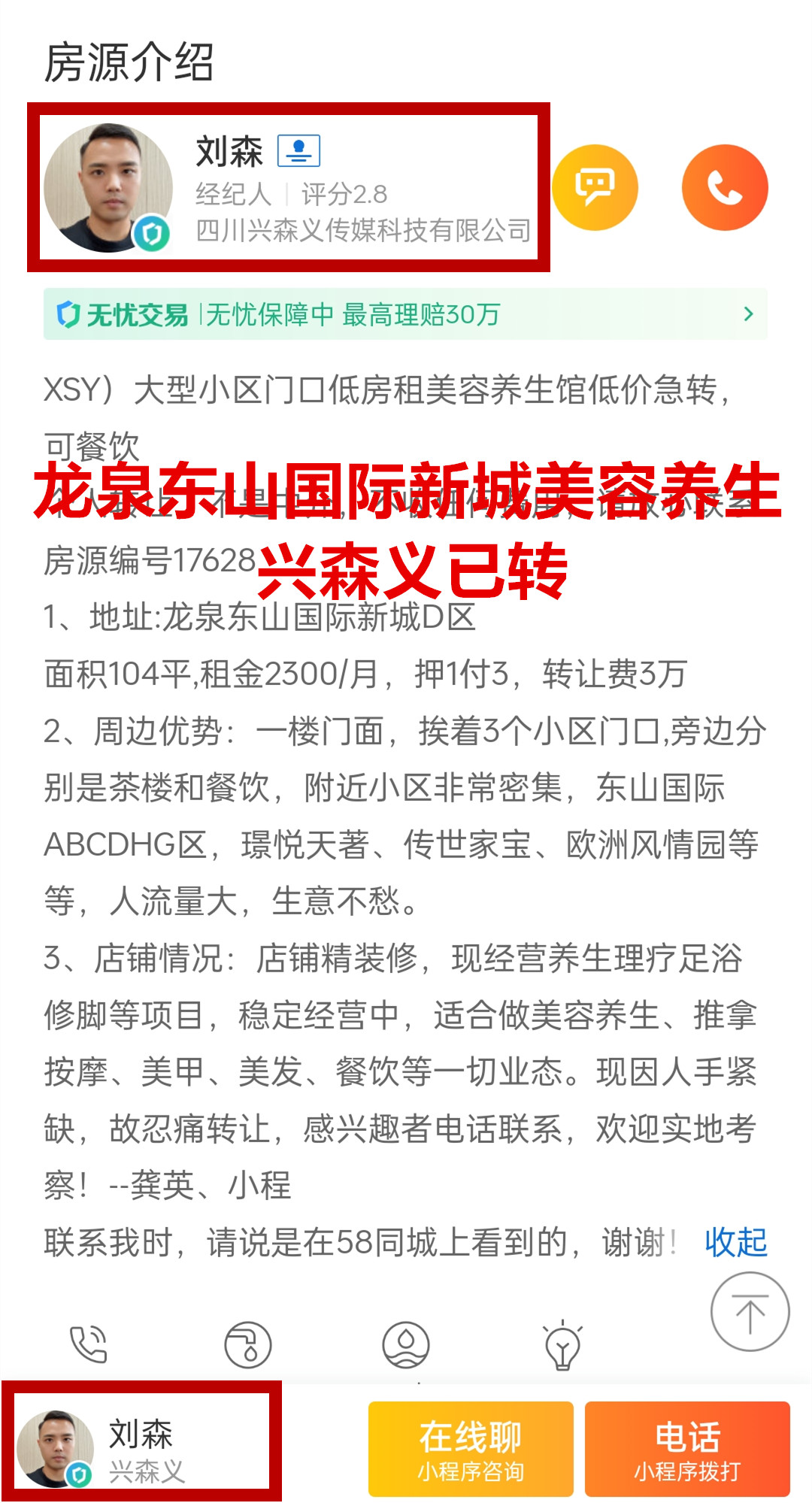 龙泉东山国际新城美容养生馆已转让