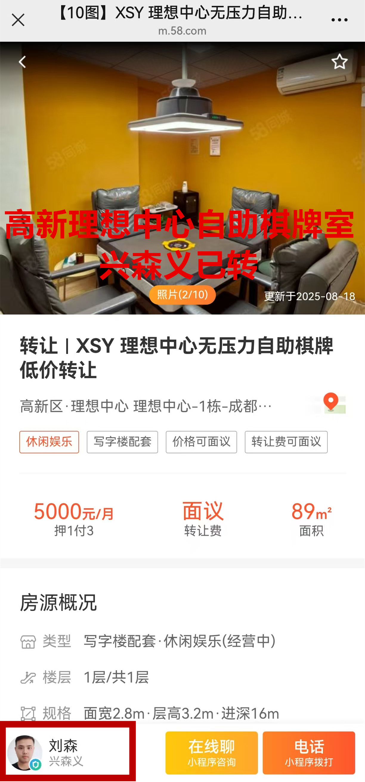 高新天益街理想中心一栋自助棋牌室已转让