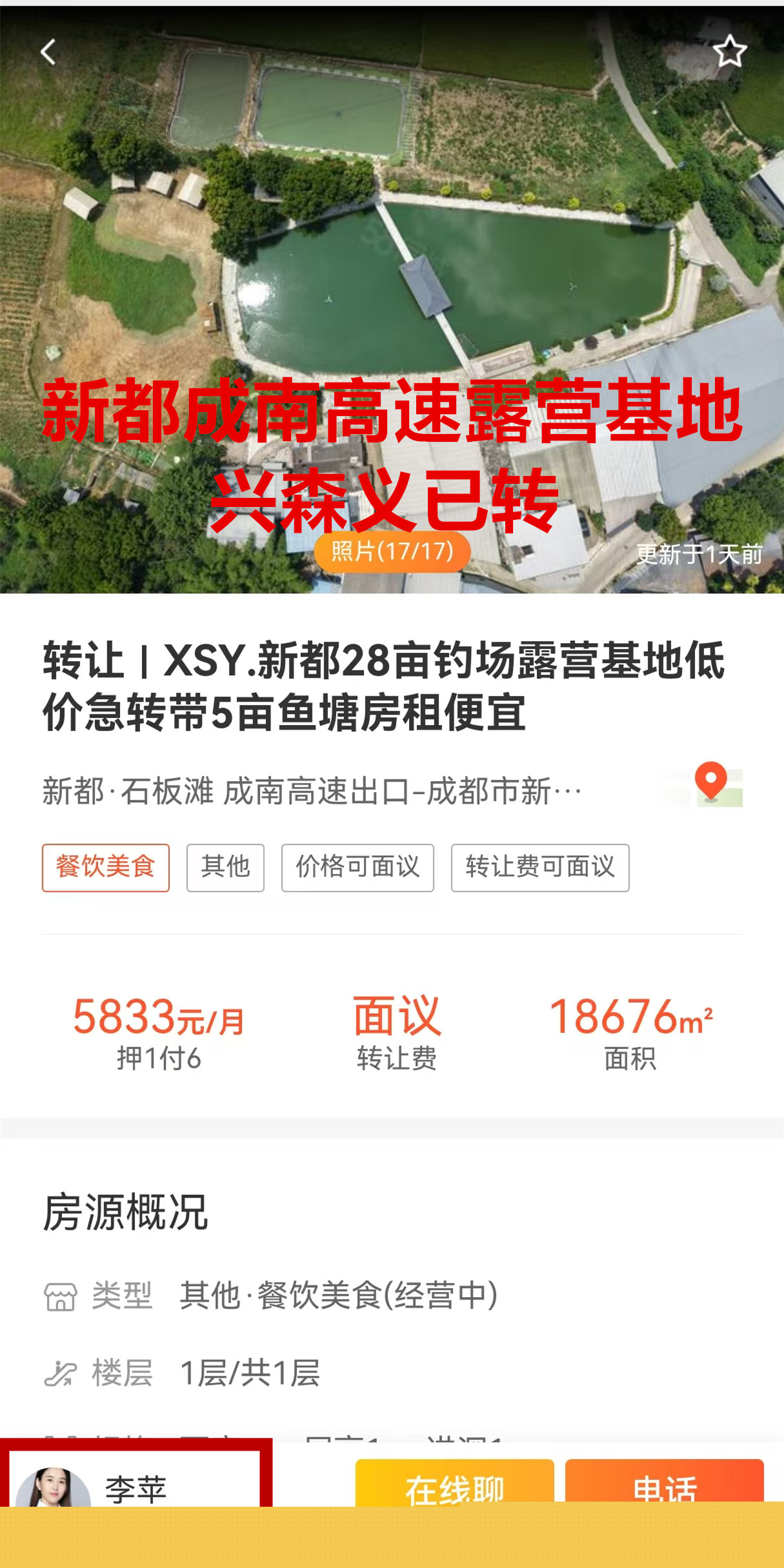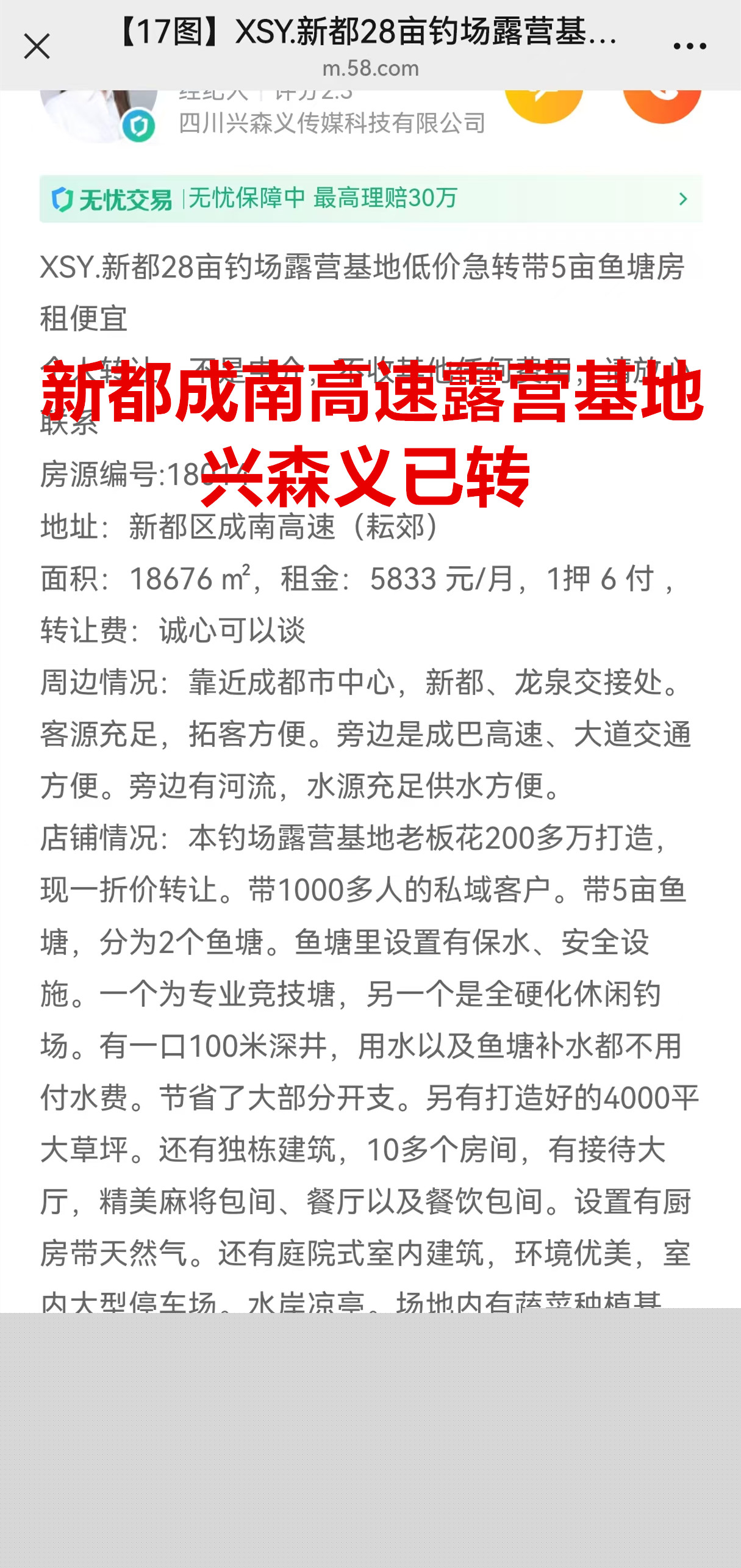 新都区成南高速露营基地带鱼塘已转让