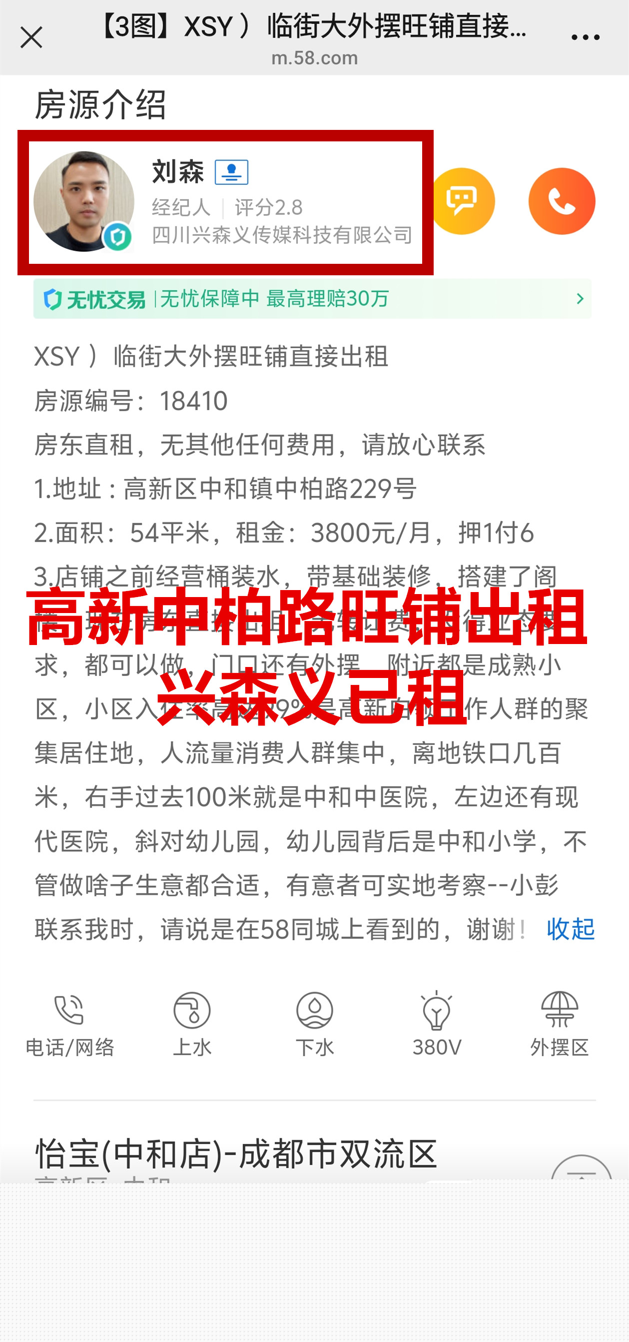高新区中和镇中柏路桶装水已租