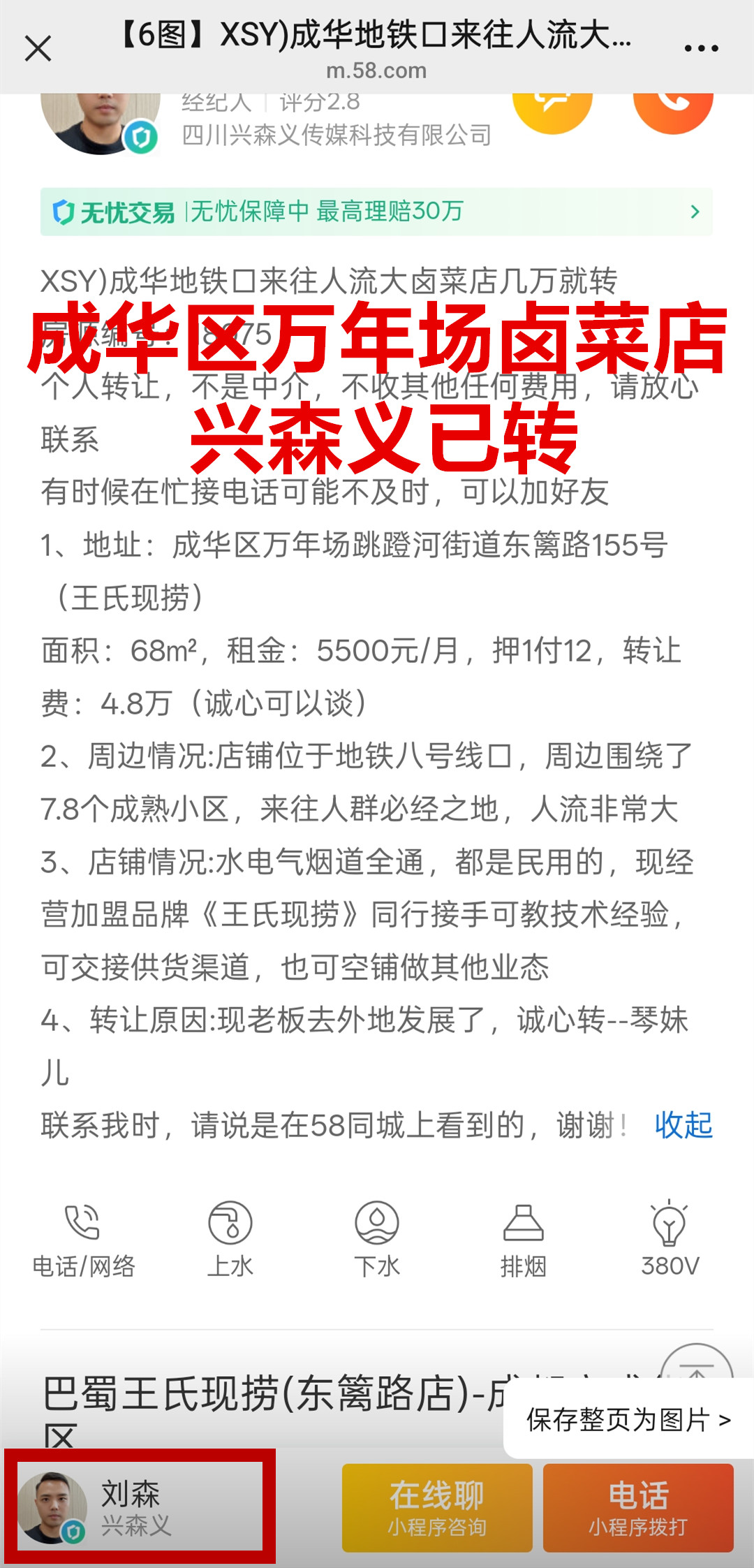 成华区万年场跳蹬河街道东篱路卤菜店已转让