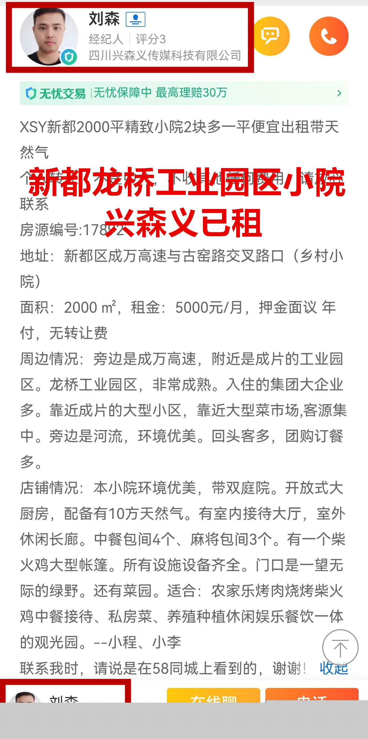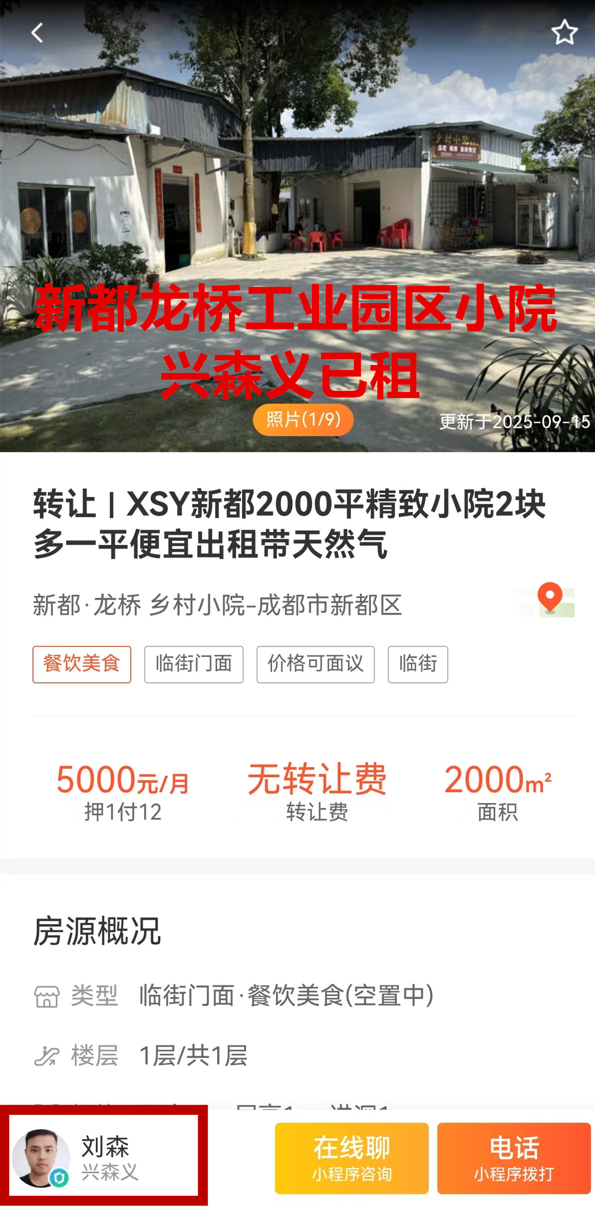 新都区成万高速与古窑路交叉路口小院已租