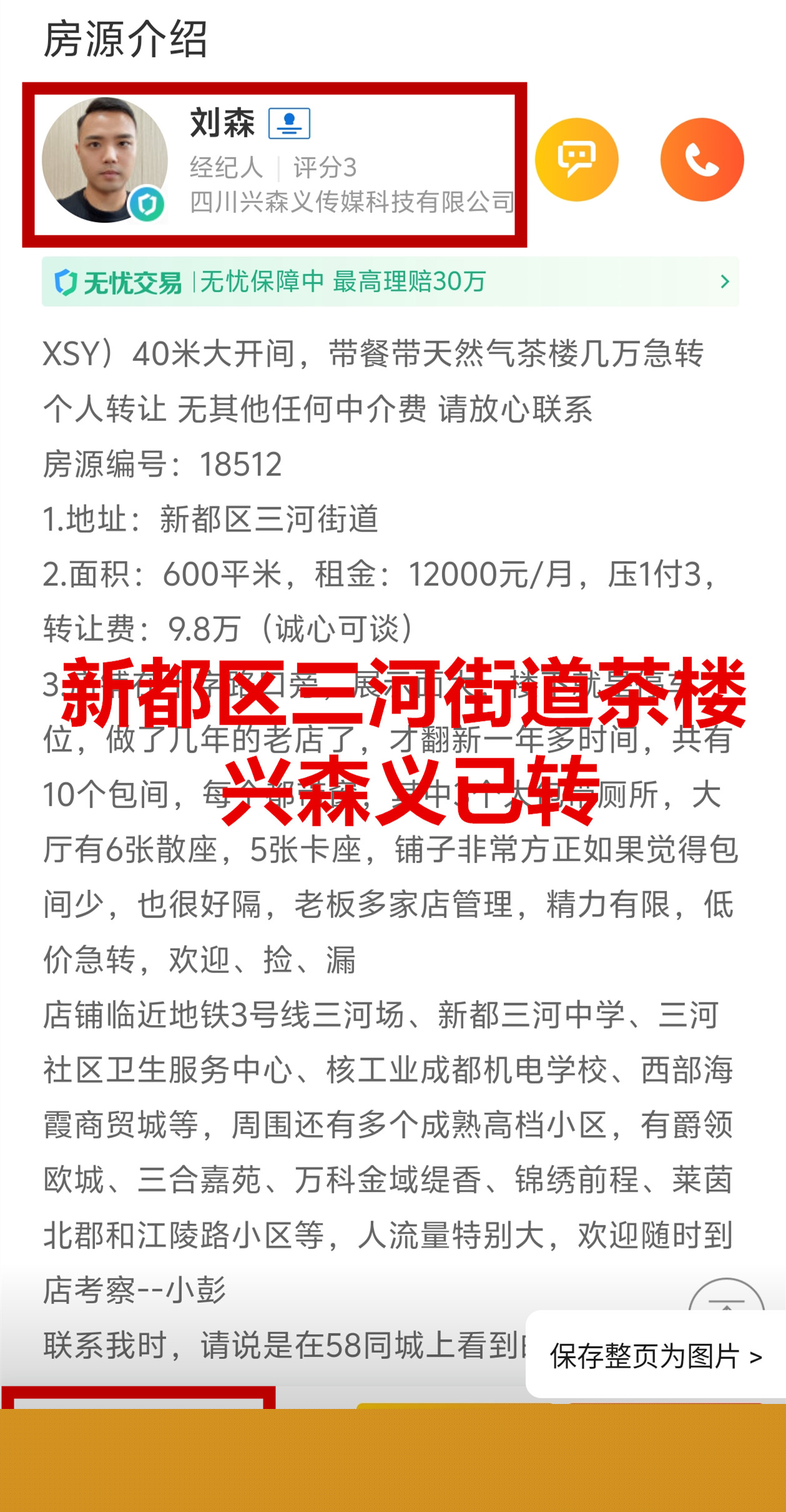 新都区三河街道茶楼已转让