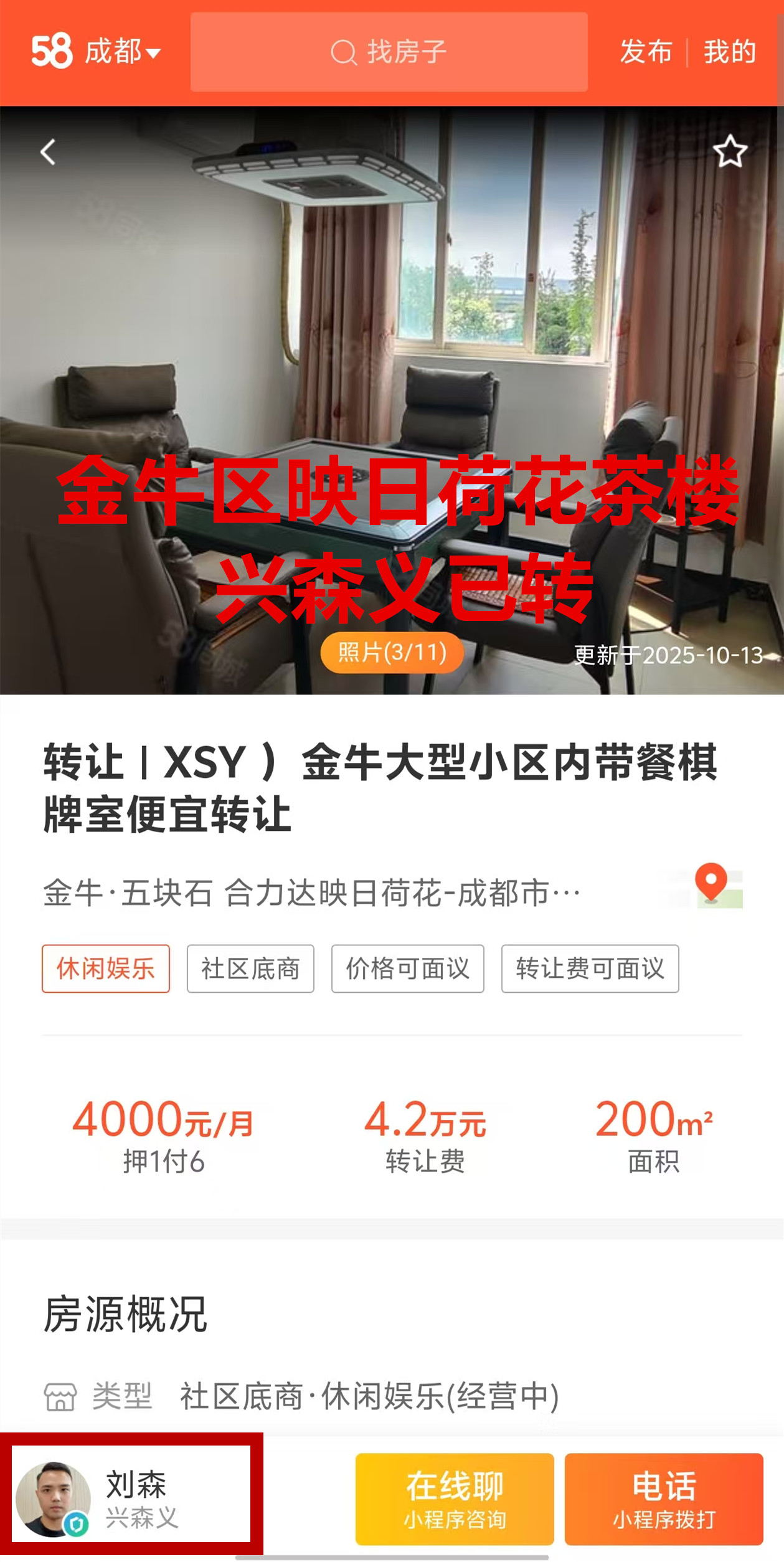 金牛蓉北商贸大道二段茶楼已转让