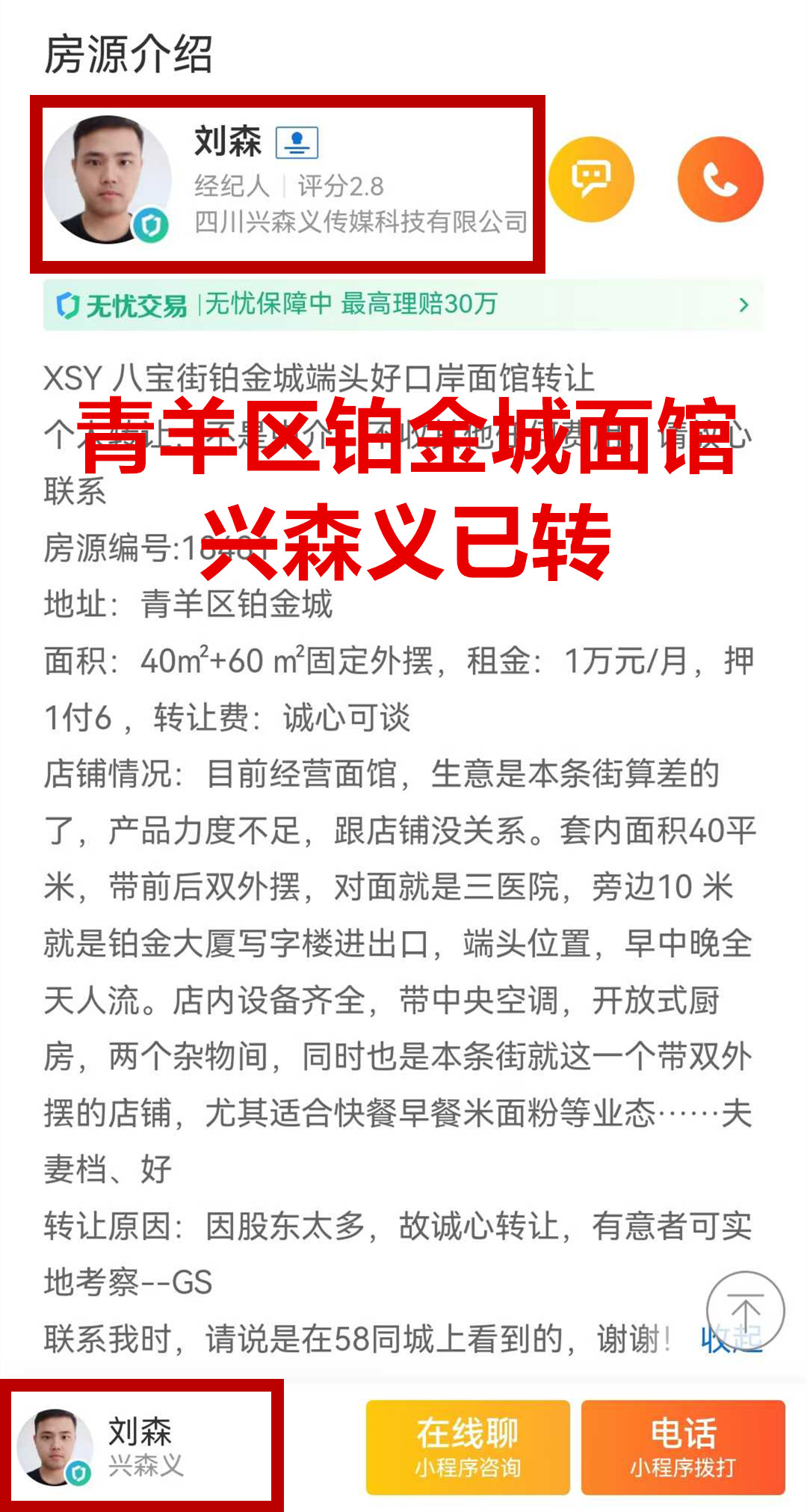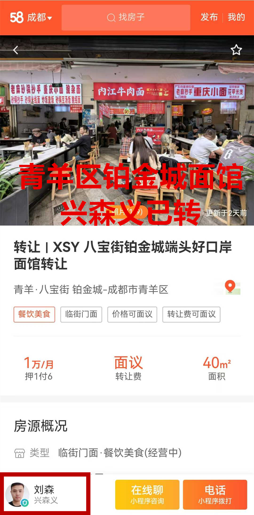 青羊区铂金城面馆已转让