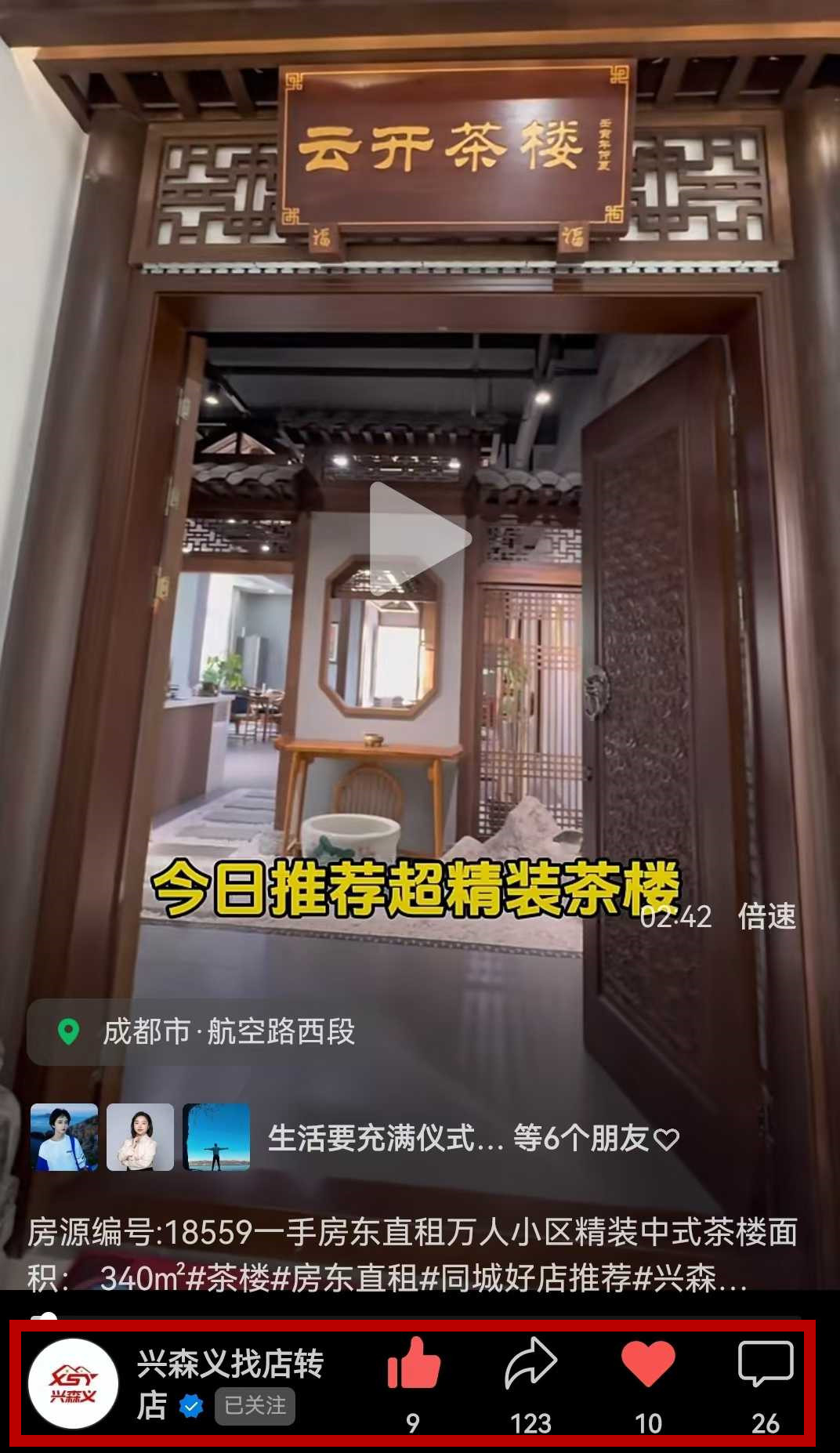 双流东升街道航空路西段茶楼已租