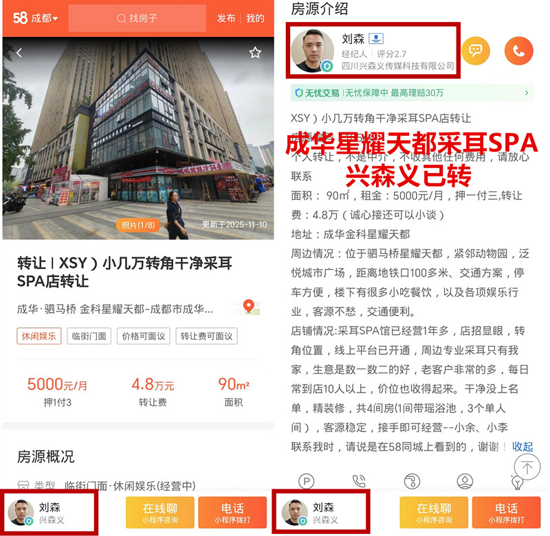 成华金科星耀天都采耳SPA店已转让