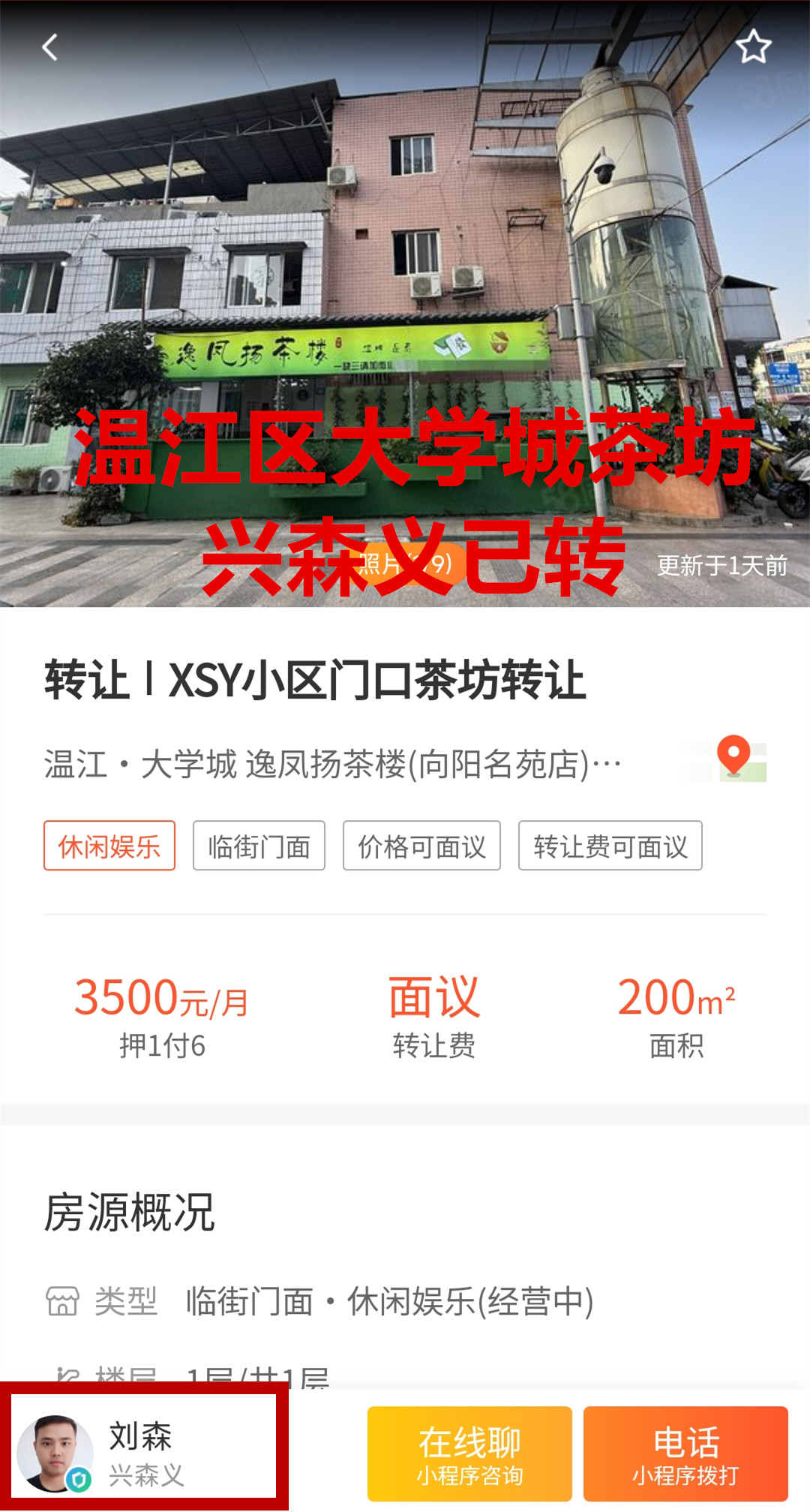 温江区凤溪河大道中段茶楼已转让