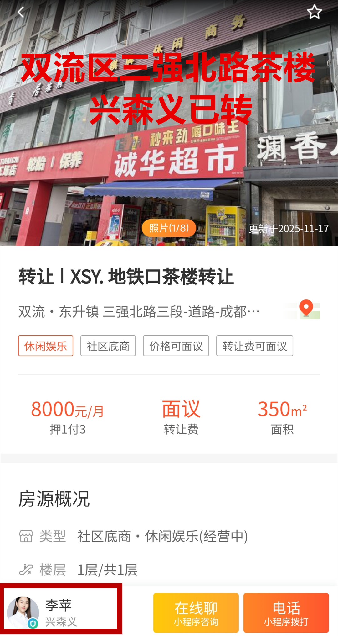 双流东升街道三强北路三段茶楼已转让