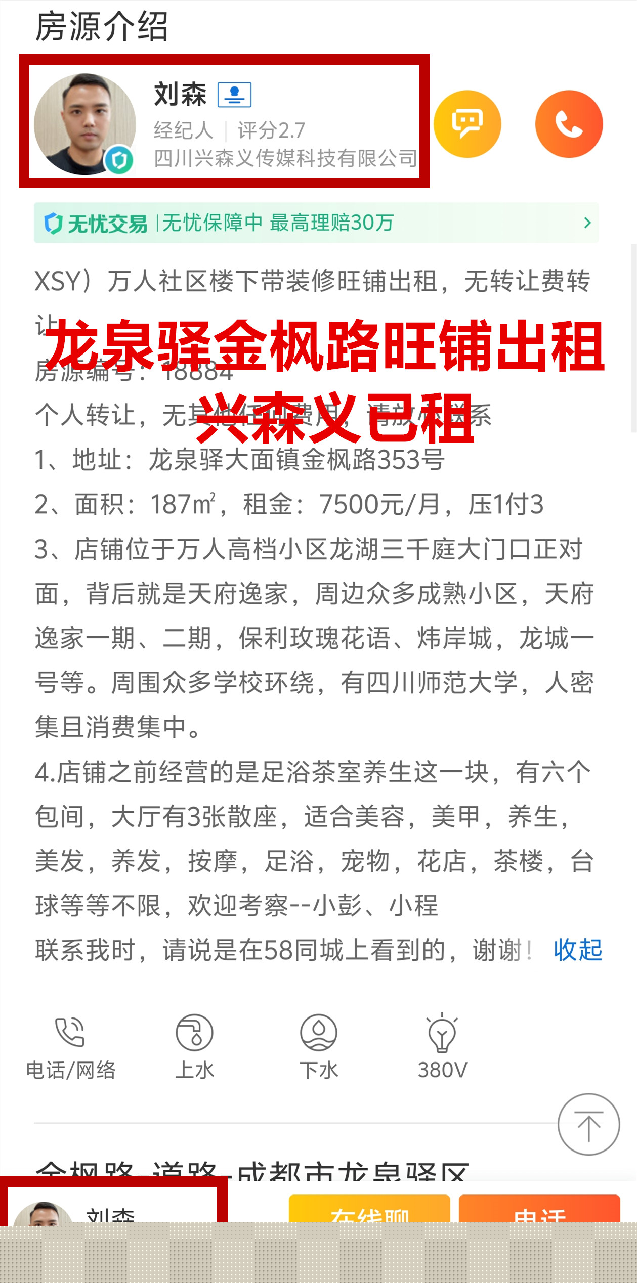 龙泉驿大面镇金枫路旺铺已出租