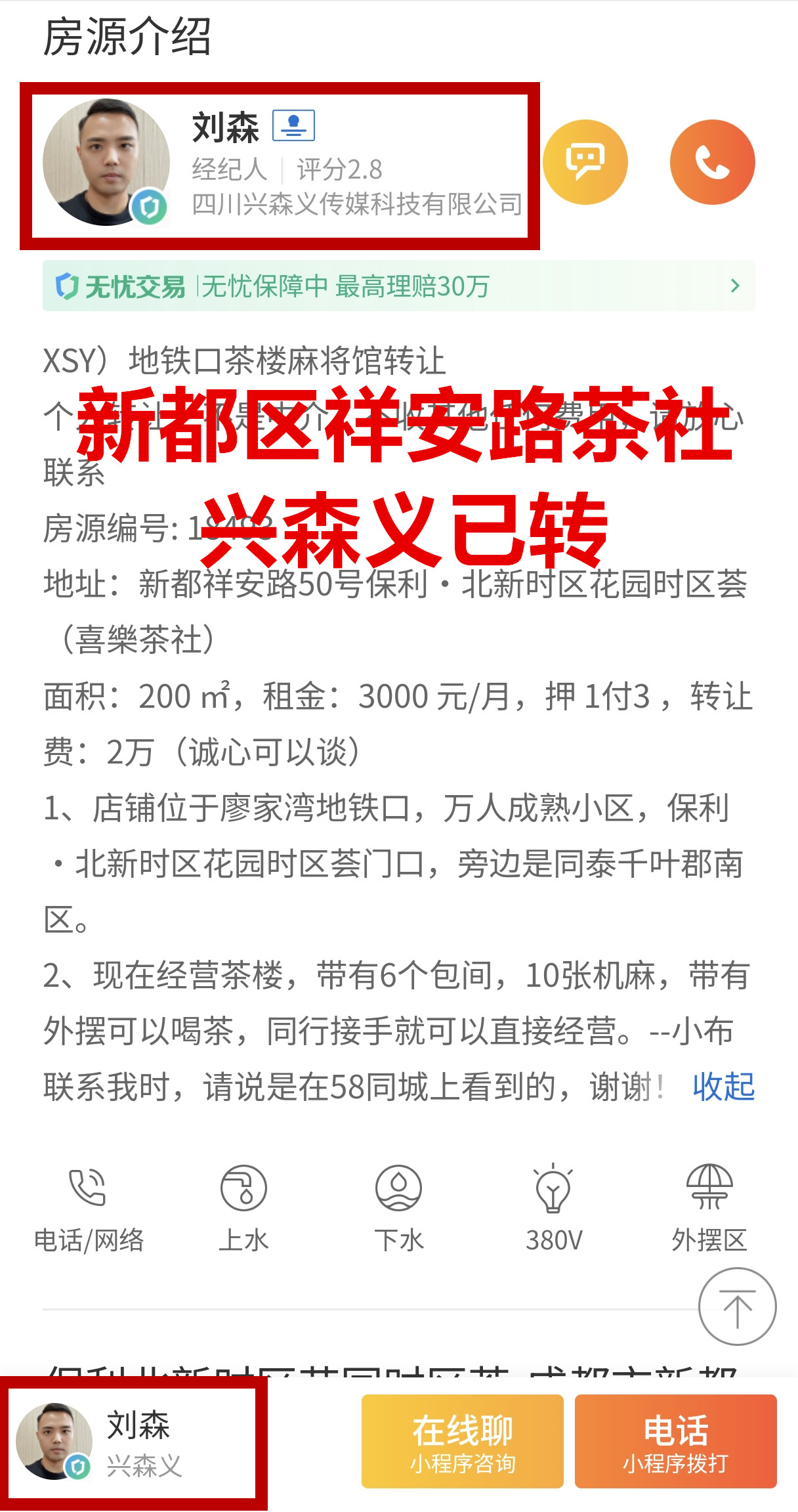新都祥安路保利.北新时区花园时区荟茶楼已转让