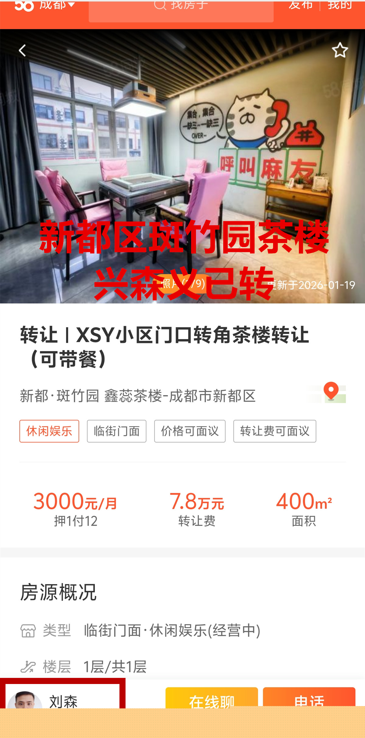新都区丽都路与丽都街交叉口茶楼已转让