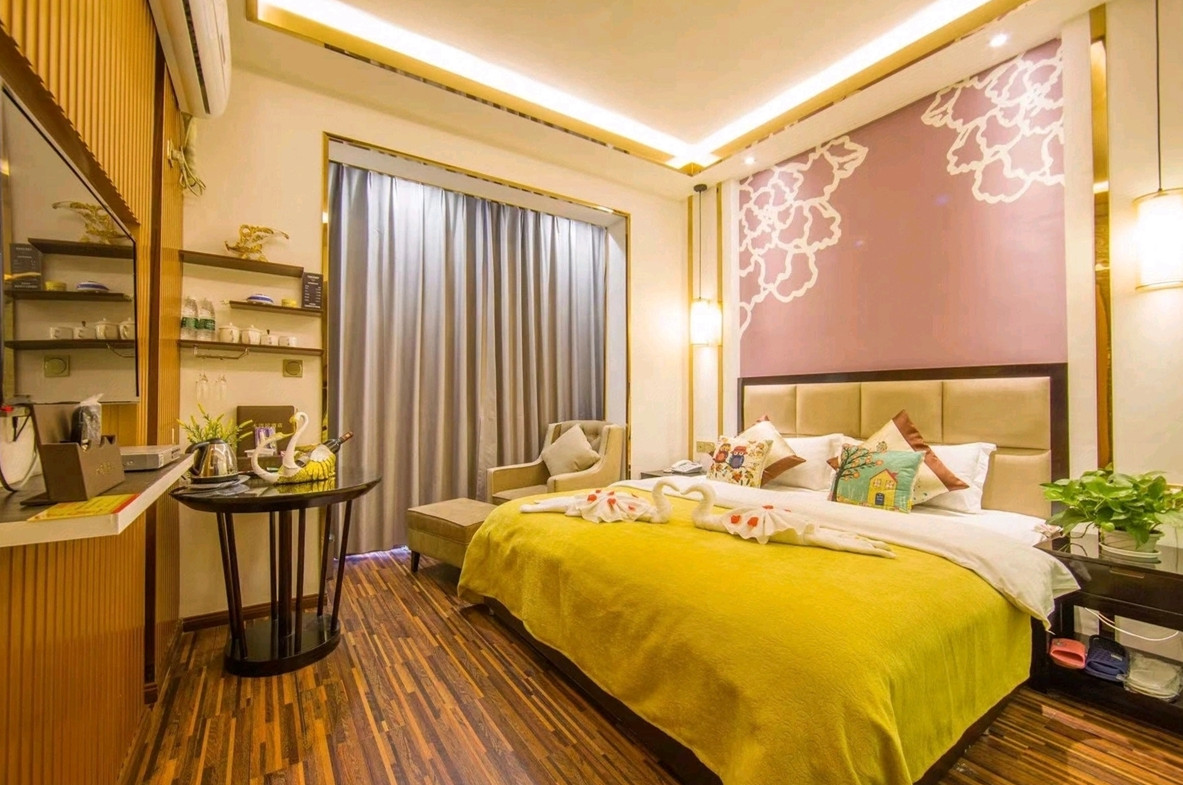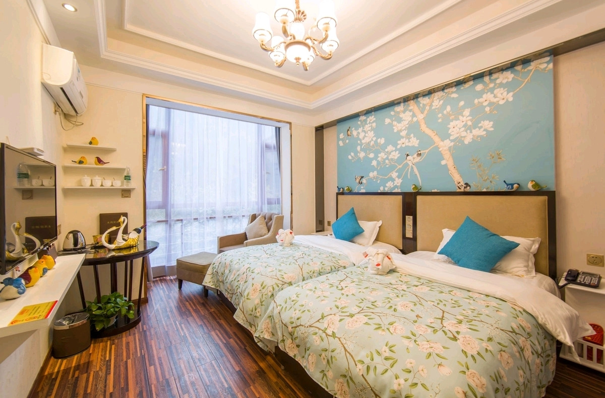 酒店介绍:酒店独栋5层共17个特色主题房间,所有房间带有智能控制系统,酒店1楼为接待大厅可提供就餐,(带有独立厨房,通天然气)房间宽敞明亮,装修精美,干净整洁,拥有大床房,双人标间,家庭套房,酒店前靠水,后靠山,临近花水湾温泉第一村,豪生温泉大酒店。夏季避暑玩水漂流,冬季泡天然硫磺温泉,西岭雪山赏雪滑雪。淡季有长住固定客源,旺季一房难求--张宇