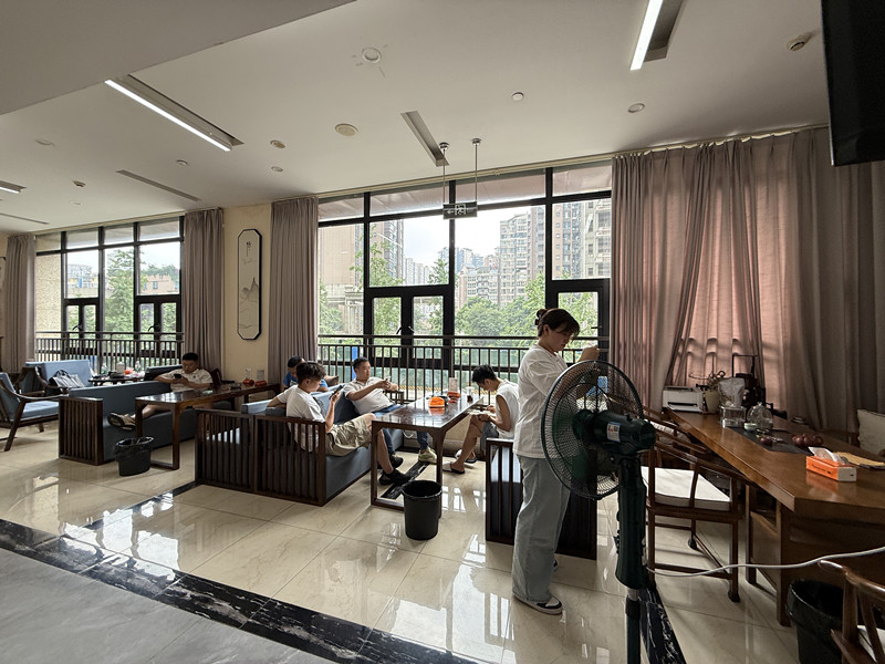 店铺情况:目前经营茶楼,新装修,位于小区门口第二间,铺子紧挨建设路,东郊记忆。超大店招,招牌显眼。临街二楼,带大厅包含两张散台,两张卡座,一张功夫茶,包间共5个,4个机麻包间(其中一个带独卫),1间住宿,另外还有一个台球区域,接手即可经营