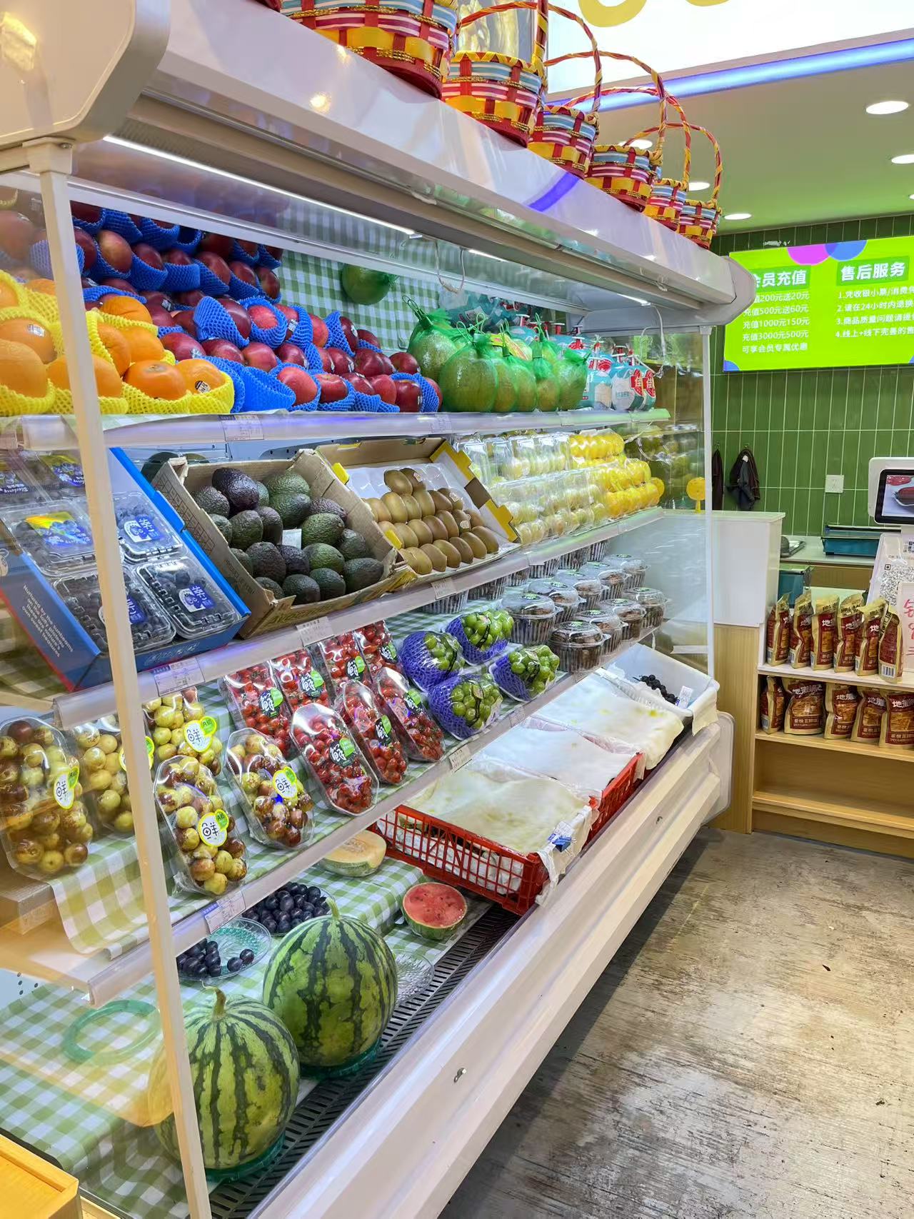 店铺介绍:目前经营水果,每天流水平均3000,数据可查,周末更好,带有独立卫生间,有超大外摆,格局方方正正,装修精致,所有设施设备齐全,可提供供货商,接手就可以直接经营。