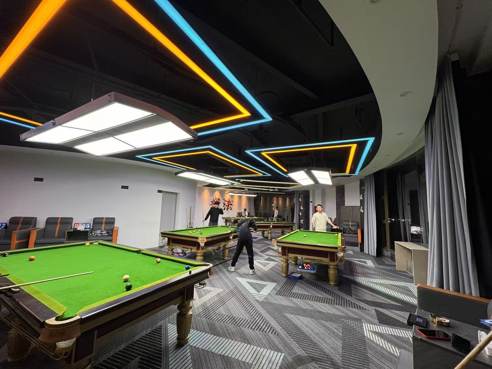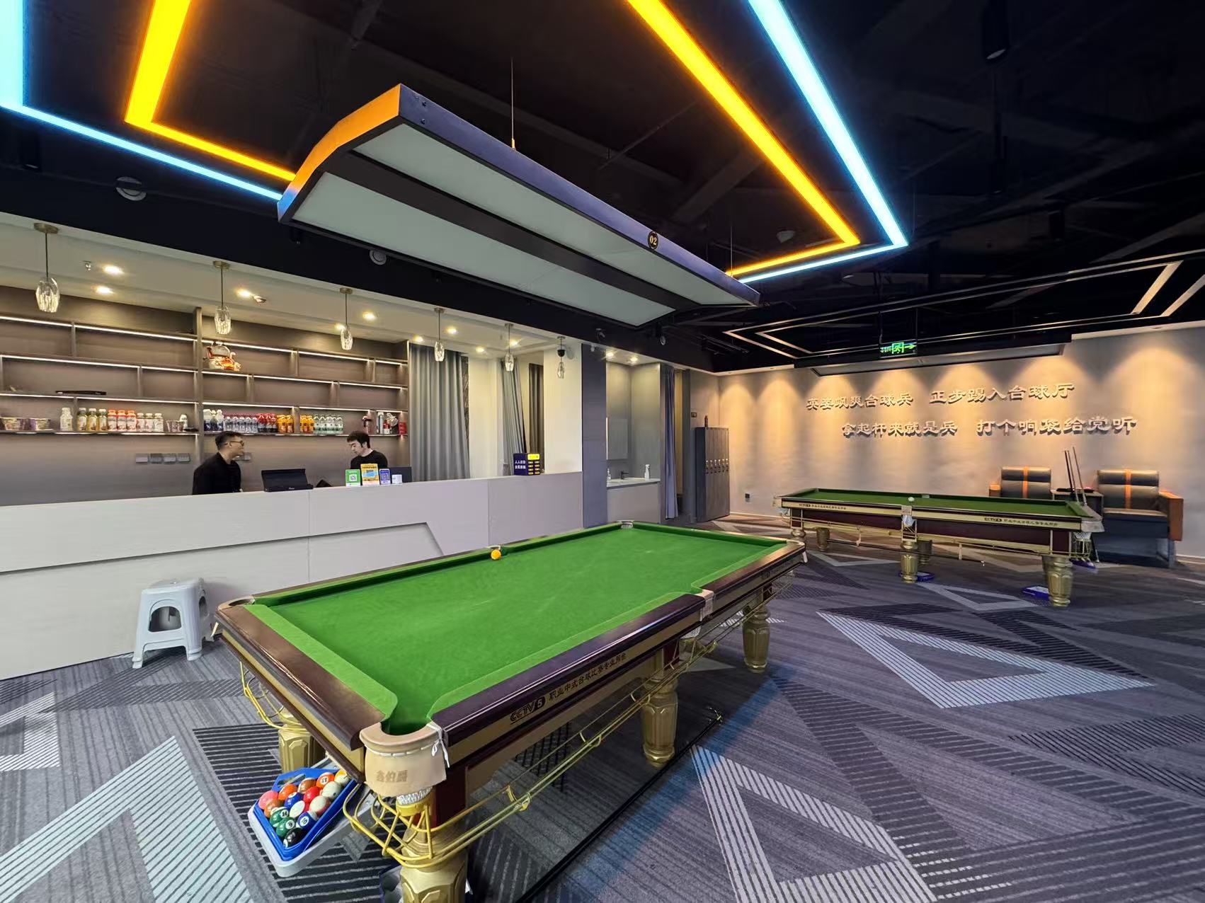 店子招牌显眼,装修精致,设备设施齐全, 证件齐全,带中央空调,开间大,带独立卫生间,中共有7张台球桌,生意稳定,可到店实地考察!店铺前期花重金打造,高端大气上档次!