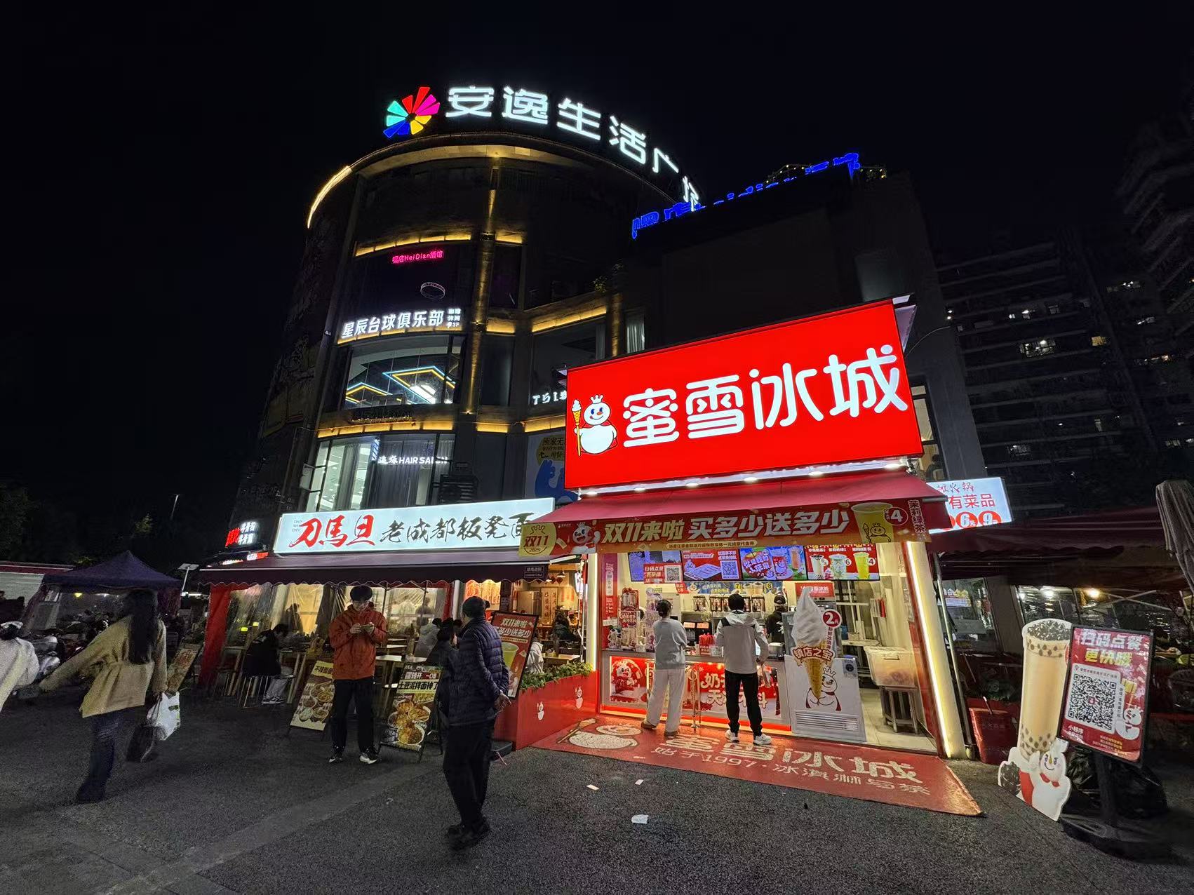 3、店子位于成熟商圈,就在犀浦安逸生活广场这边,店子周边都是万人小区西郡兰庭,锦苑,双铁广场,红旗连锁,蜜雪冰城,这边平时跟周末,人流量都是爆满,楼下就是餐饮一条街,停车场也在楼下,这确实是个好口岸