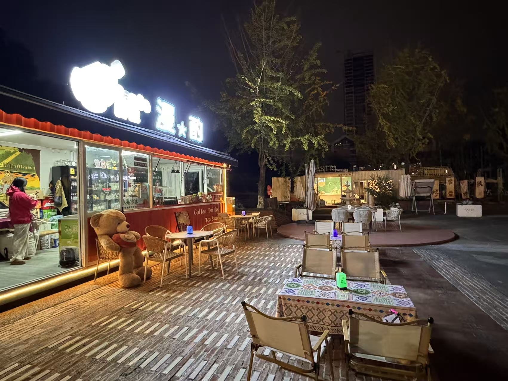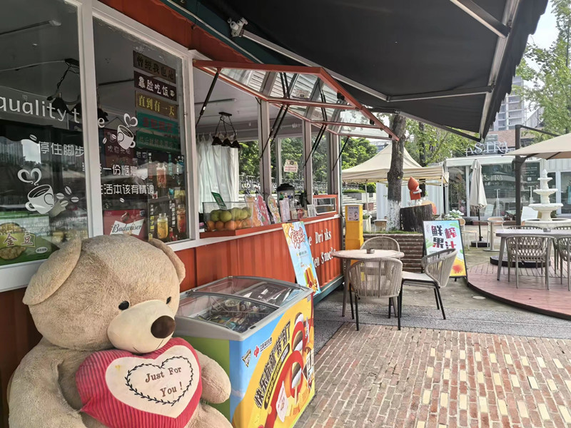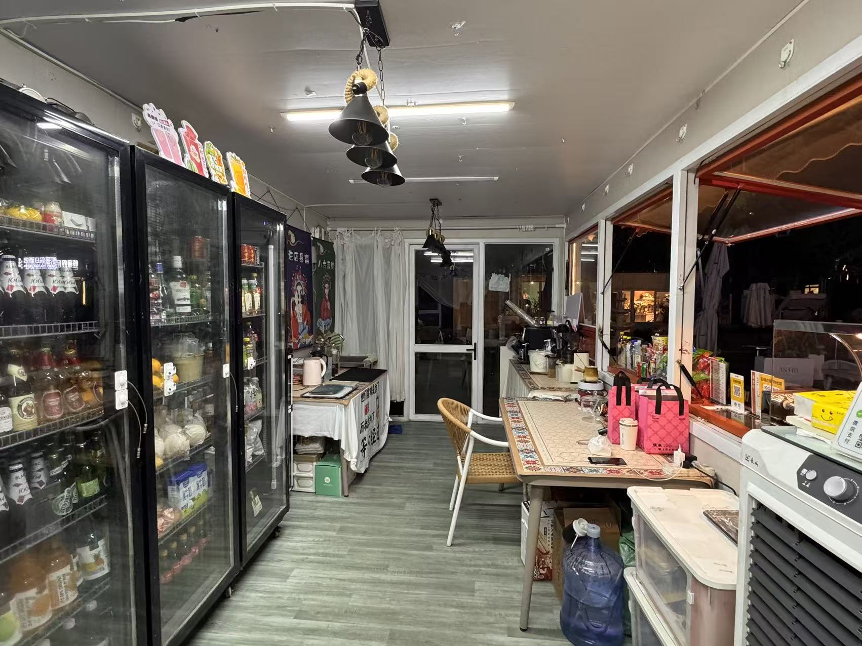 店子招牌显眼,装修精致,设备设施齐全, 证件齐全,开间大,带有超大外摆,现在经营日咖夜酒,小吃咖啡奶茶,有上下水!