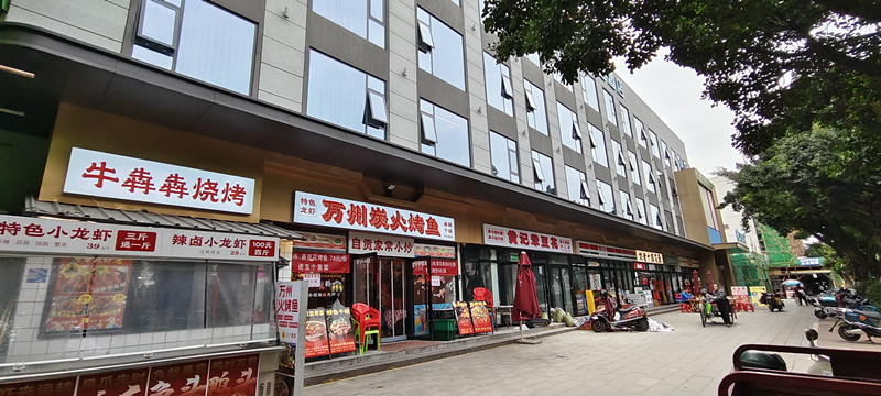 1、周边情况:店铺位于武侯神仙树附近,周边都是成熟小区,旁边是学校和地铁口,从早到晚人流不愁,客源相当稳定,楼上是汉庭酒店,店铺就位于双小区门口,酒店门口