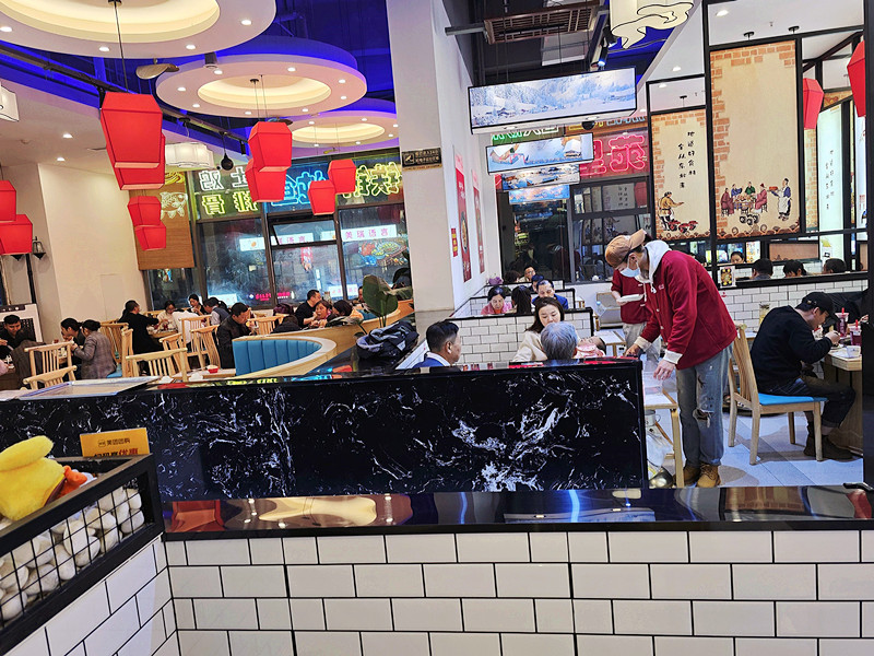 2,店铺情况: 现经营东北铁锅炖,20米招牌显眼,共7大圆桌 ,2包间圆桌,14长方形桌,美团双平台商家,铺面方正,彩光良好,水电、八方气独立烟道四通,餐饮设施设备齐全,覆盖式中央空调加独卫,电梯扶梯口、东北同行接手直接可营业,火锅串串、汤锅羊肉汤、夜宵中餐等都是比较好的选择,接手无需装修。--小冉
