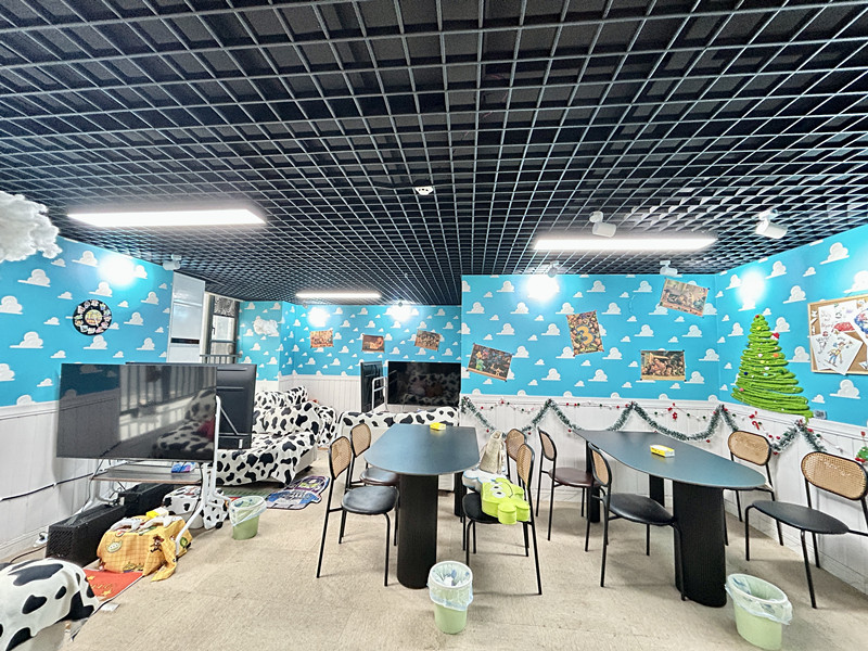 4、店铺情况.店铺现经营ps5 switch电玩桌游,经营元素多样化,总共3个包间,一楼为前台,卫生间,卡座和桌游区,二楼是3个包间,和两个卡座,总共9台显示屏,其中一个房间带有机麻,低价急转,马上过年也是五家渠