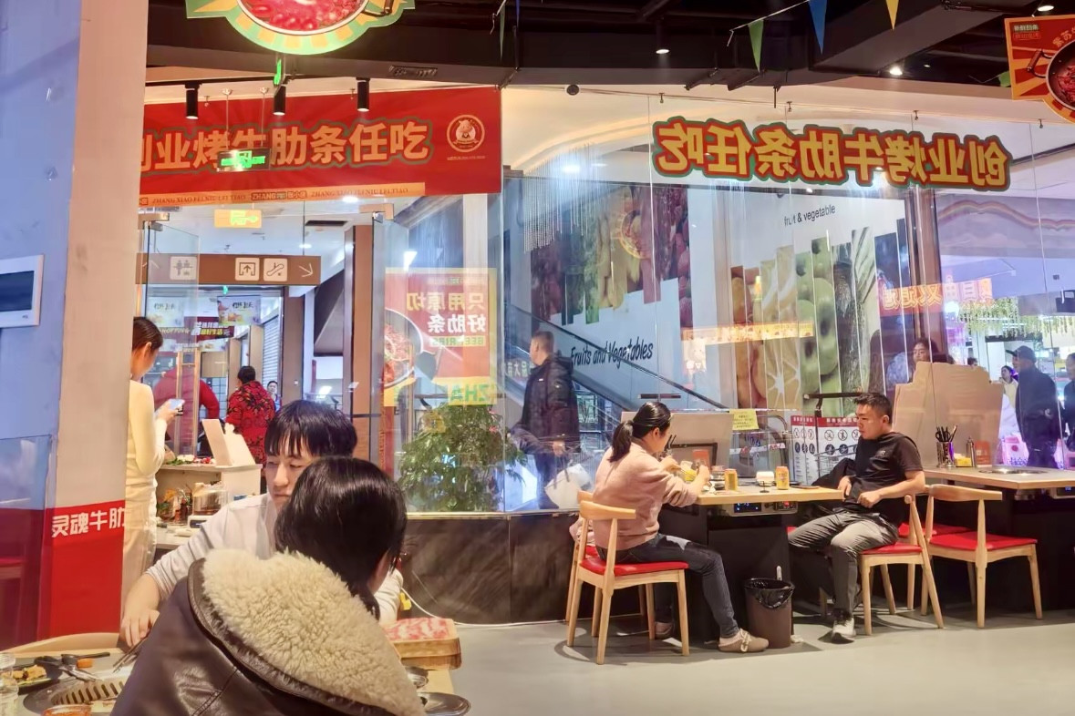 2、店铺情况:全部差不多100万精装修,设施设备齐全,层高4米可以搭二楼,带有超大中央厨房和双通道,独立卫生间,目前桌子摆了24张,业态不限,特别适合烤肉,中餐,火锅等,楼下全是品牌餐饮店,瑞幸,蜜雪等,楼上还有茶楼,儿童乐园,自带流量。