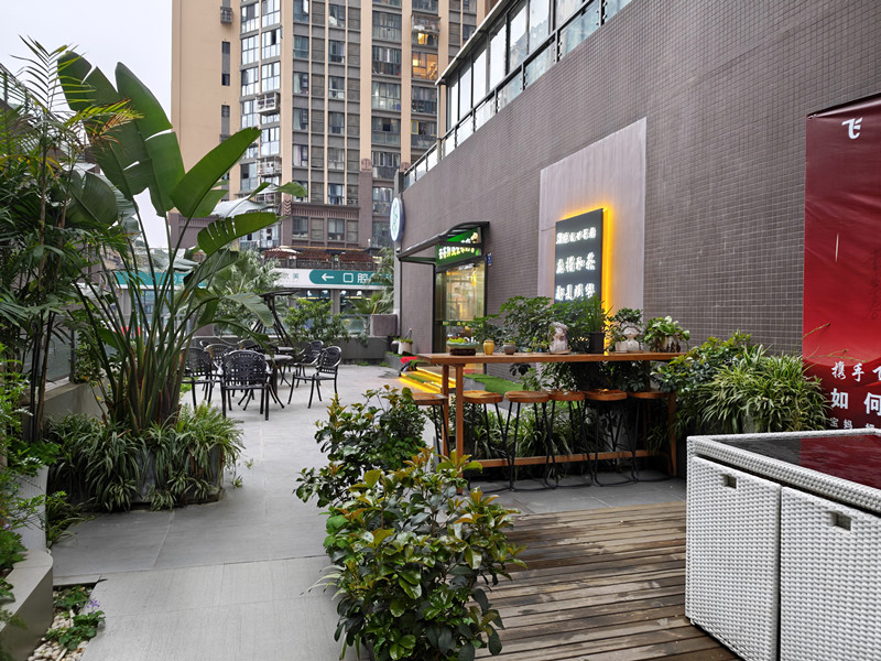 店铺情况:茶楼现代化装修,门口有露台花园,大厅配备三张散座,三张卡座,有个操作间,做点简餐没有任何问题,总共7个包间(3个带独卫)