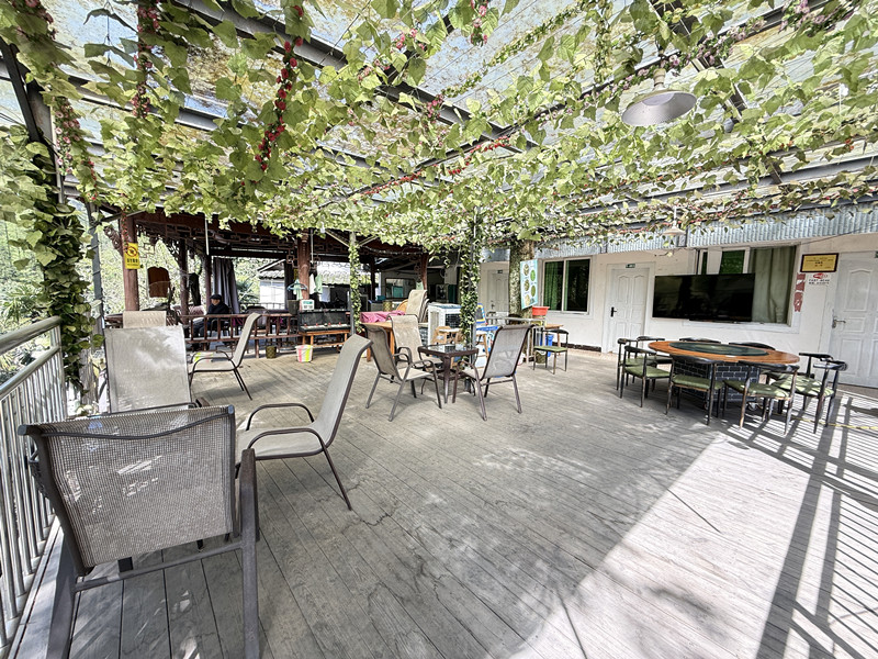 2、店铺情况:民宿农家乐依山而建,共四层,一楼二楼都是餐饮,棋牌室,厨房区域,还有住宿房间,三楼四楼全是房间,总共房间19个,河边的几十米长凉亭也可使用,平时喝茶棋牌娱乐都可以,停车场就在凉亭旁边,有实力的老板拿过来还可以重新修建,总共打造20多个房间没有问题,位置没的说,可以说是自带流量,青城山大体量路边位置,目前可以整体出租,免租期给1年,如果后期投资大,免租期还可延长,先到先得!--大彭