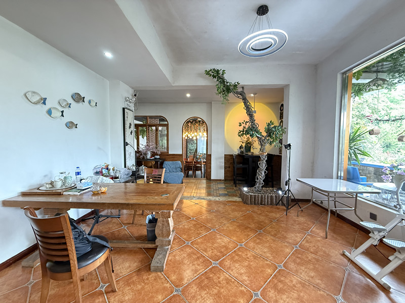 2、店铺情况:度假民宿依山而建,丽江风格打造,整个院子被绿意萦绕,种满了很多品种的绿植,空气特别的好,负氧离子 能达到3.2万 个,而且正朝日出方向,天气好可以看日出。晚上赏月品茶,民宿共四层,带有房间14个,2个备用房,超大餐厅,会议室,超大庭院,4-6月份蔷薇花爆满整个院子,是拍照打卡的网红店,是青城后山一颗耀眼的星光,厨房带有水电气三通,而且民宿后院拥有1000多平的超大绿色森林,里面被一棵千年的紫藤围绕,风景非常的好,目前用作棋牌喝茶和特色柴火鸡部分,后期可以加私汤或者是小木屋玻璃房,改造空间特别大,老板经营多年,老客户特别的多,同行接手就是旺季。