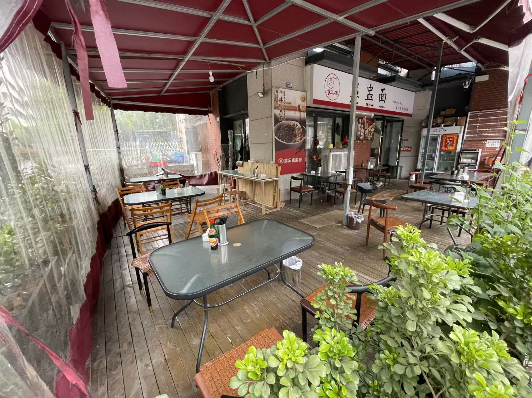 店铺情况:属于人流动线首家店,展示面大,超大的L型外摆(外摆已搭建好,花篮,围挡,电动伸缩雨棚,木地板,杂物间),室内户型方正 无公摊,水,电,天然气,烟道,油烟净化器齐全,部分设备去年底更新,目前一个月6万左右流水,巅峰月流水达到过14-15万,因为经营不善,诚心转让--小布